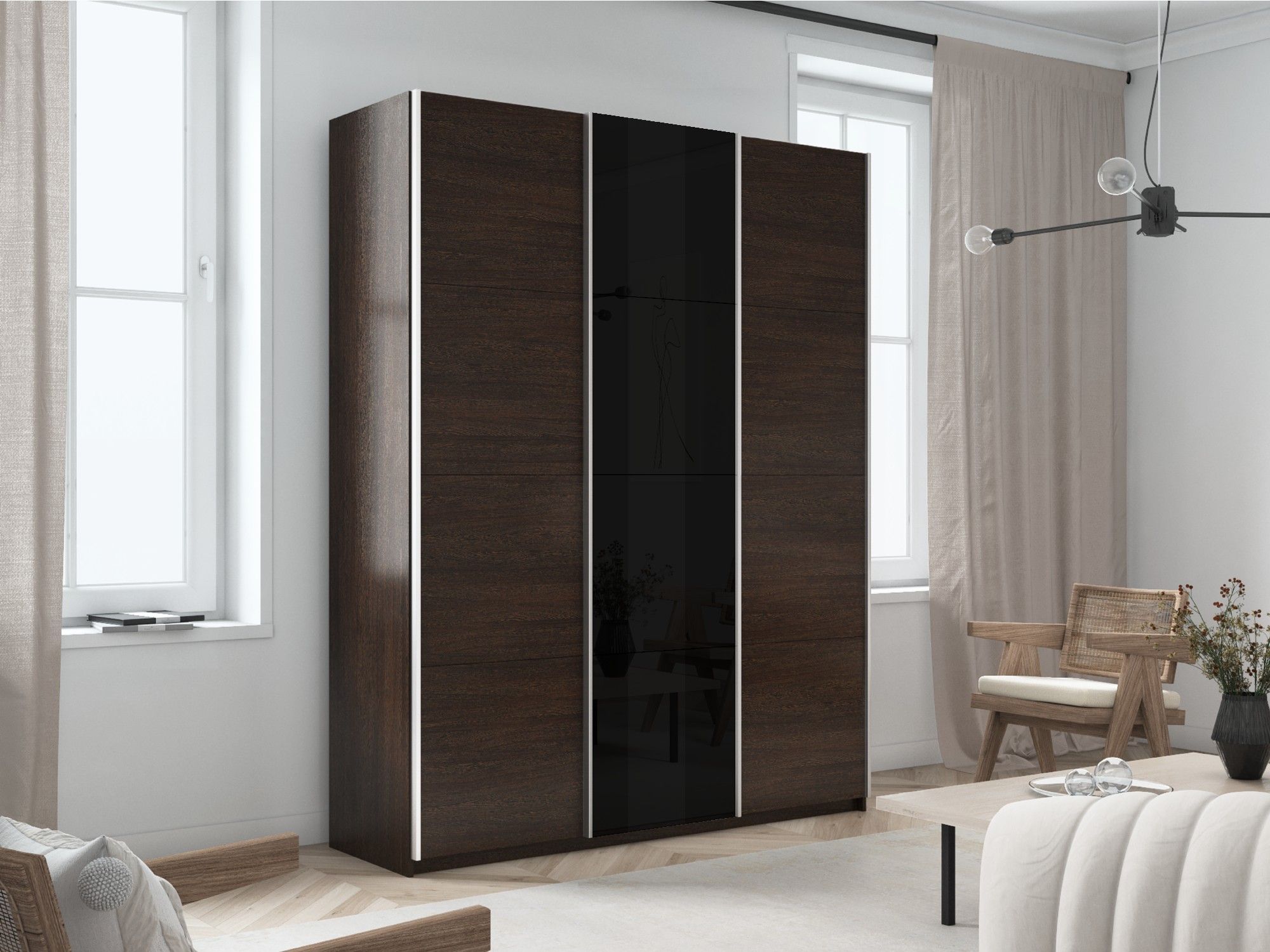 Отзывы о Столплит Шкаф-купе Прайм 3-х дверный ДСП/Стекло черное/Доводчики 180х57х230 Венге