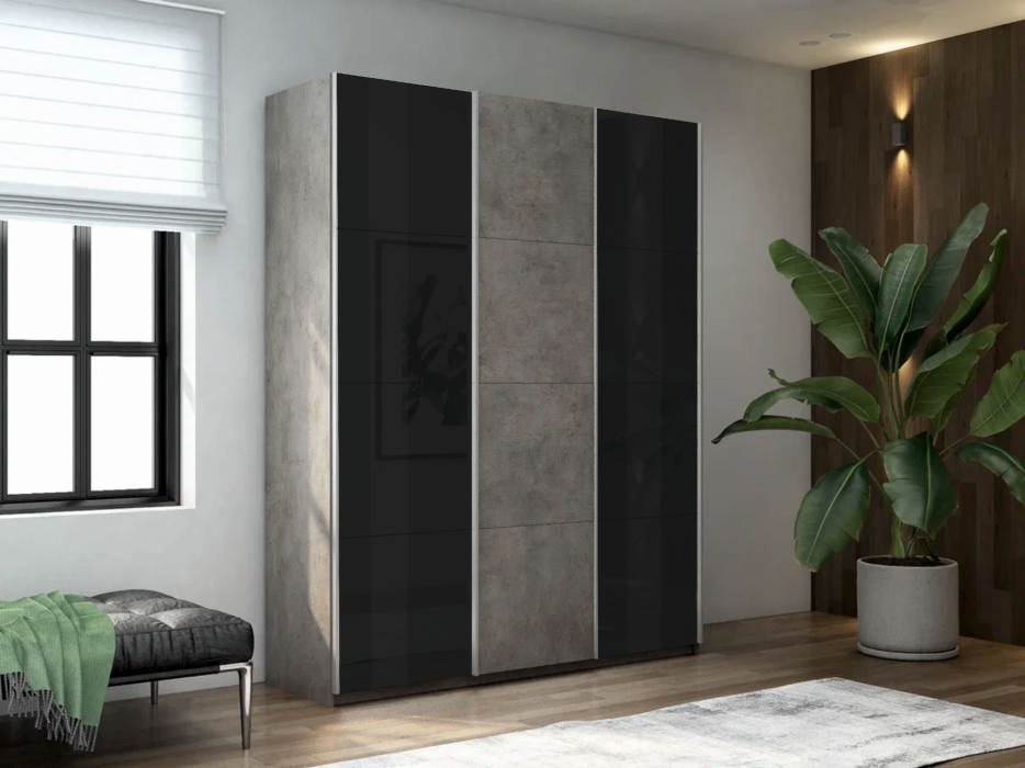 Отзывы о Столплит Шкаф-купе Прайм 3-х дверный Стекла черные/ДСП/Доводчики 210х57х230 бетон