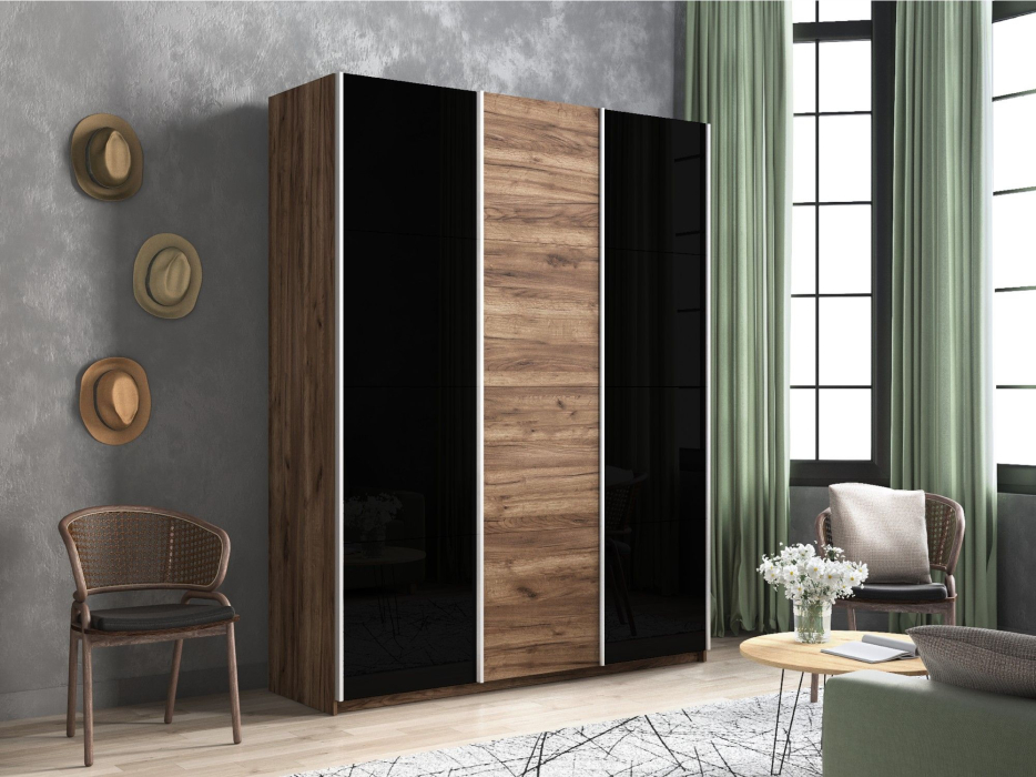 Отзывы о Столплит Шкаф-купе Прайм 3-х дверный Стекла черные/ДСП/Доводчики 210х57х230 Дуб/крафт/табак