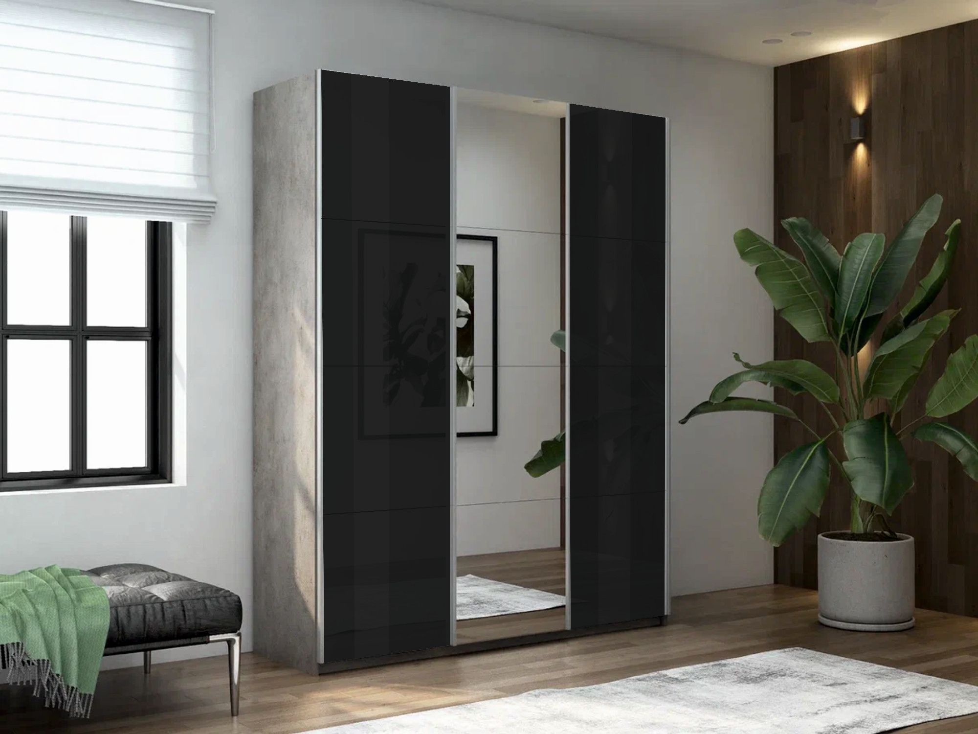 Отзывы о Столплит Шкаф-купе Прайм 3-х дверный Стекла черные/Зеркало/Доводчики 180х57х230 бетон