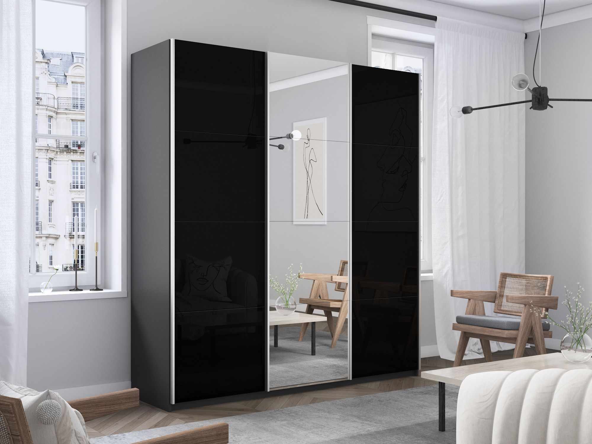 Отзывы о Столплит Шкаф-купе Прайм 3-х дверный Стекла черные/Зеркало/Доводчики 180х57х230 Серый диамант