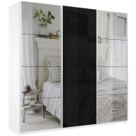 Отзывы о Столплит Шкаф-купе Прайм 3-х дверный Зеркала/Стекло черное/Доводчики 210х57х230 Белый снег