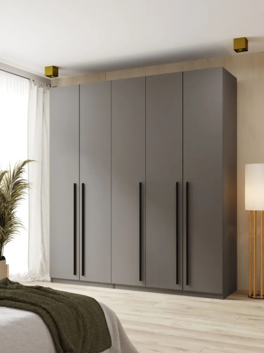 Шкаф оснащен выдвижными ящиками на бесшумных направляющих, что делает процесс доставания вещей еще более комфортным. Кроме того, он оснащен полками и штангой для размещения одежды любого типа - от платьев до пальто.