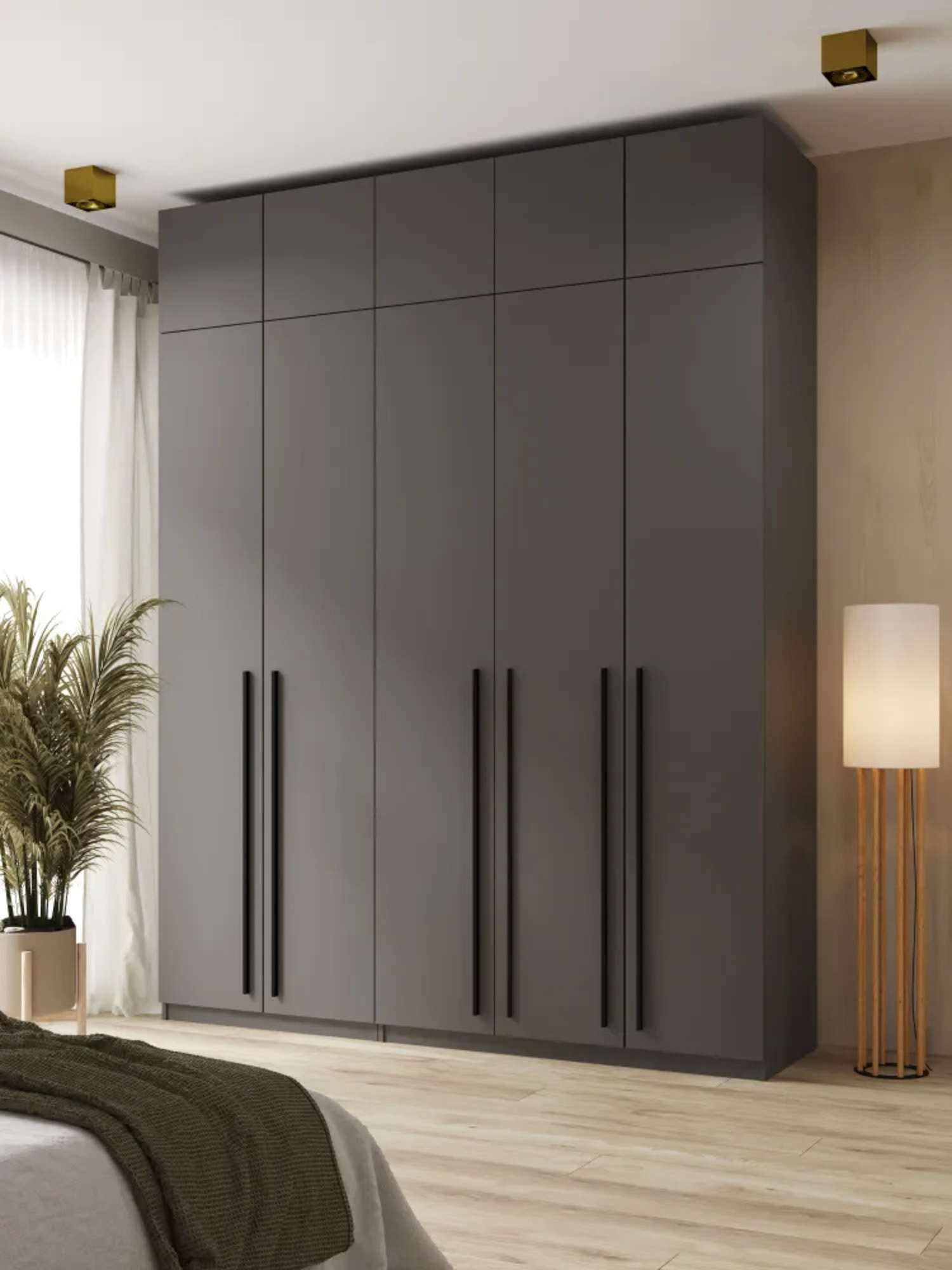 Шкаф распашной 5-ти дверный с антресолью София 2600х2000х520 мм (Графит) Код I0000428350