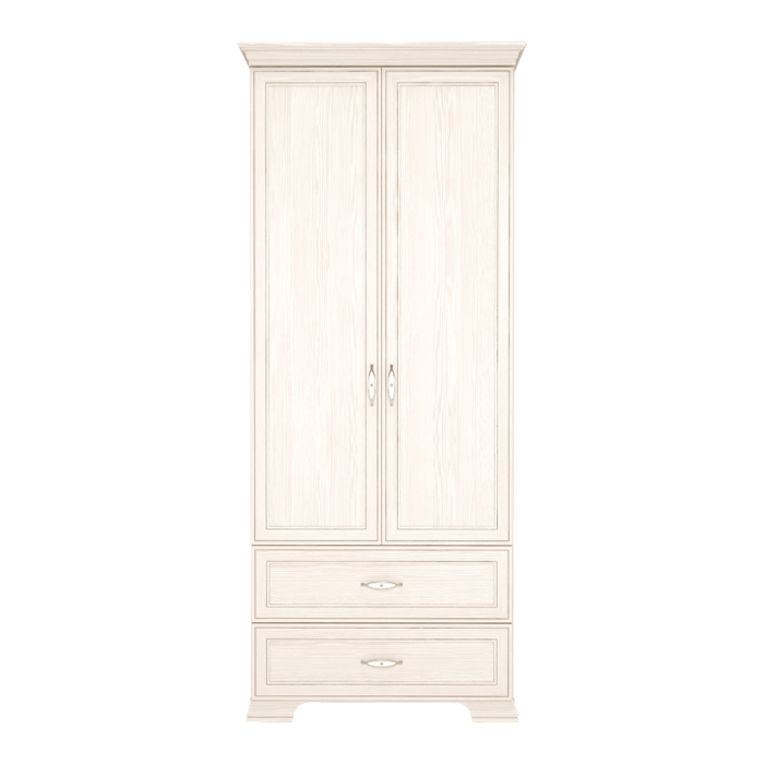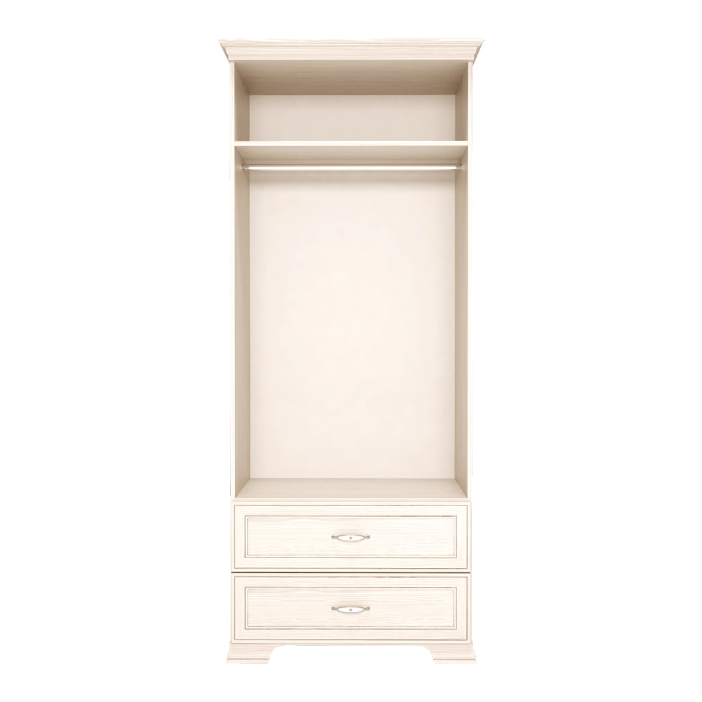 Организовать хранение одежды и белья станет легко благодаря компактному, но вместительному шкафу из коллекции Венеция. Имеет две распашные двери, внутри которых расположена полка-антресоль и продольная штанга. Вся Ваша деликатная одежда на вешалках будет храниться в порядке. 2 выдвижных ящика на шариковых направляющих пригодятся Вам для хранения вещей в сложенном виде, белья и аксессуаров.