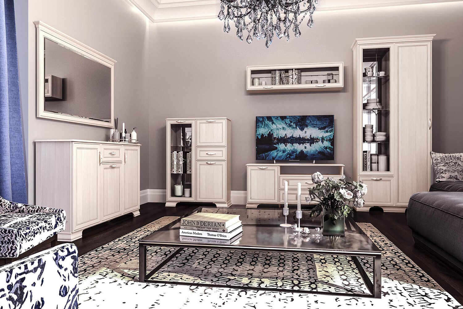 Гостиная «Венеция» выполнена в светлом декоре «Бодега светлая», в лучших классических традициях.- Каркасы модулей ЛДСП 16 мм в декоре «Бодега светлая».