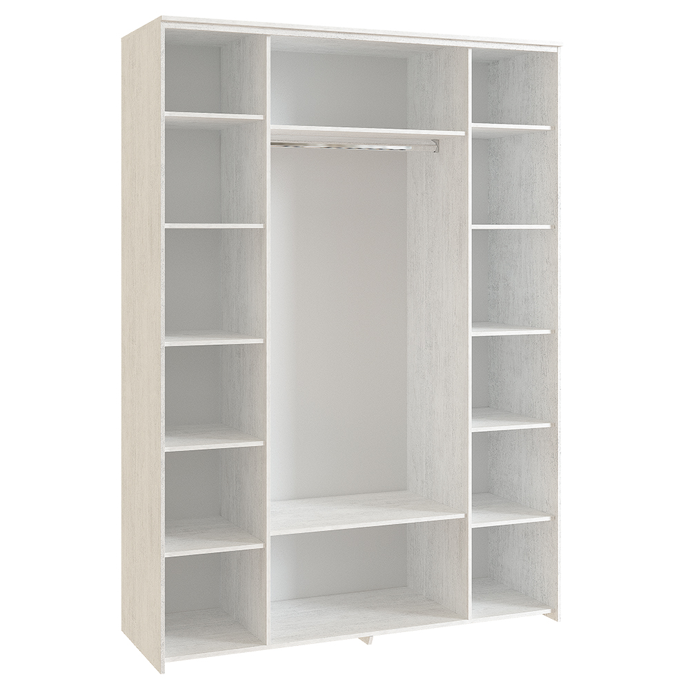 Вместительный 4-х дверный шкаф Твист включает в себя два отсека с полками и отсек со штангой.