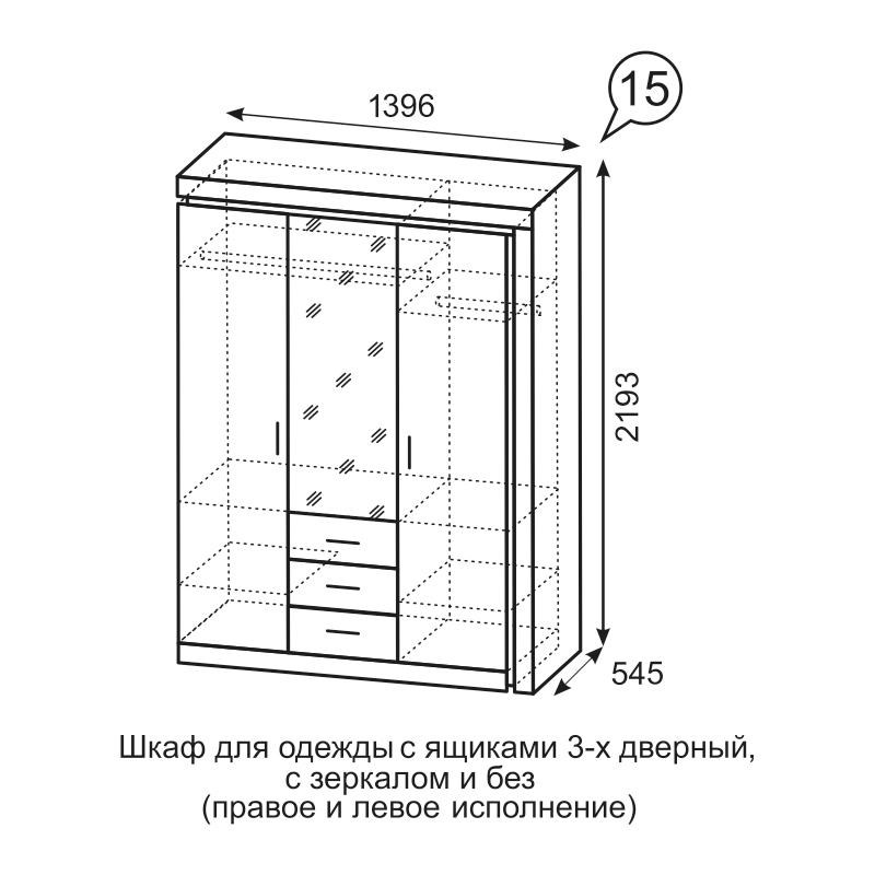 Шкаф 3-х дверный 15 Люмен Код I0000430785
