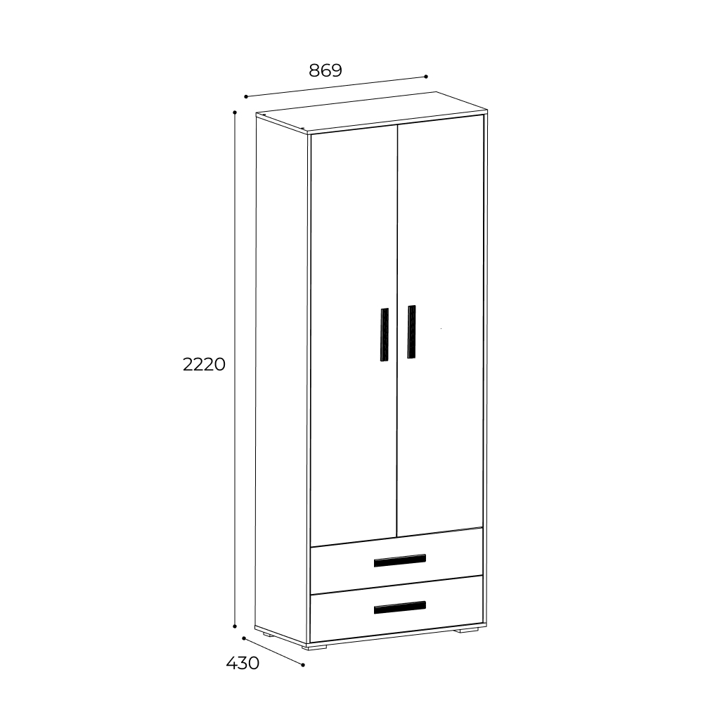 Ш 87 X В 222 X Г 43 см