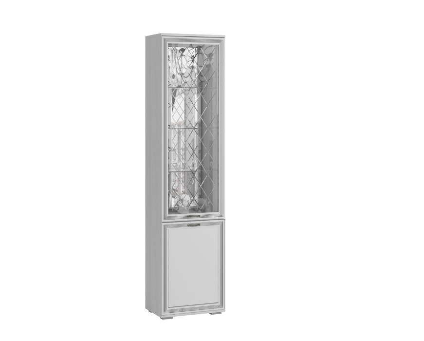 Не знаете, куда поставить сервиз в гостиной? Предлагаем Вам отличное решение - шкаф-пенал с витриной из коллекции Ливорно. Визитной карточкой модуля выступает задняя зеркальная стенка и стеклянный фасад, украшенный гравировкой в форме ромбов. Полки за глухо дверью пригодятся для тех вещей, которые лучше спрятать от лишних глаз. Данный модуль отлично сочетается с другими шкафами Ливорно. Особенности: классический стиль нейтральный цвет исполнения витражная стеклянная дверца, набор стеклянных полок и зеркальная стенка надежный ЛДСП и крепления рамочный профиль из МДФ фурнитура "старая бронза"