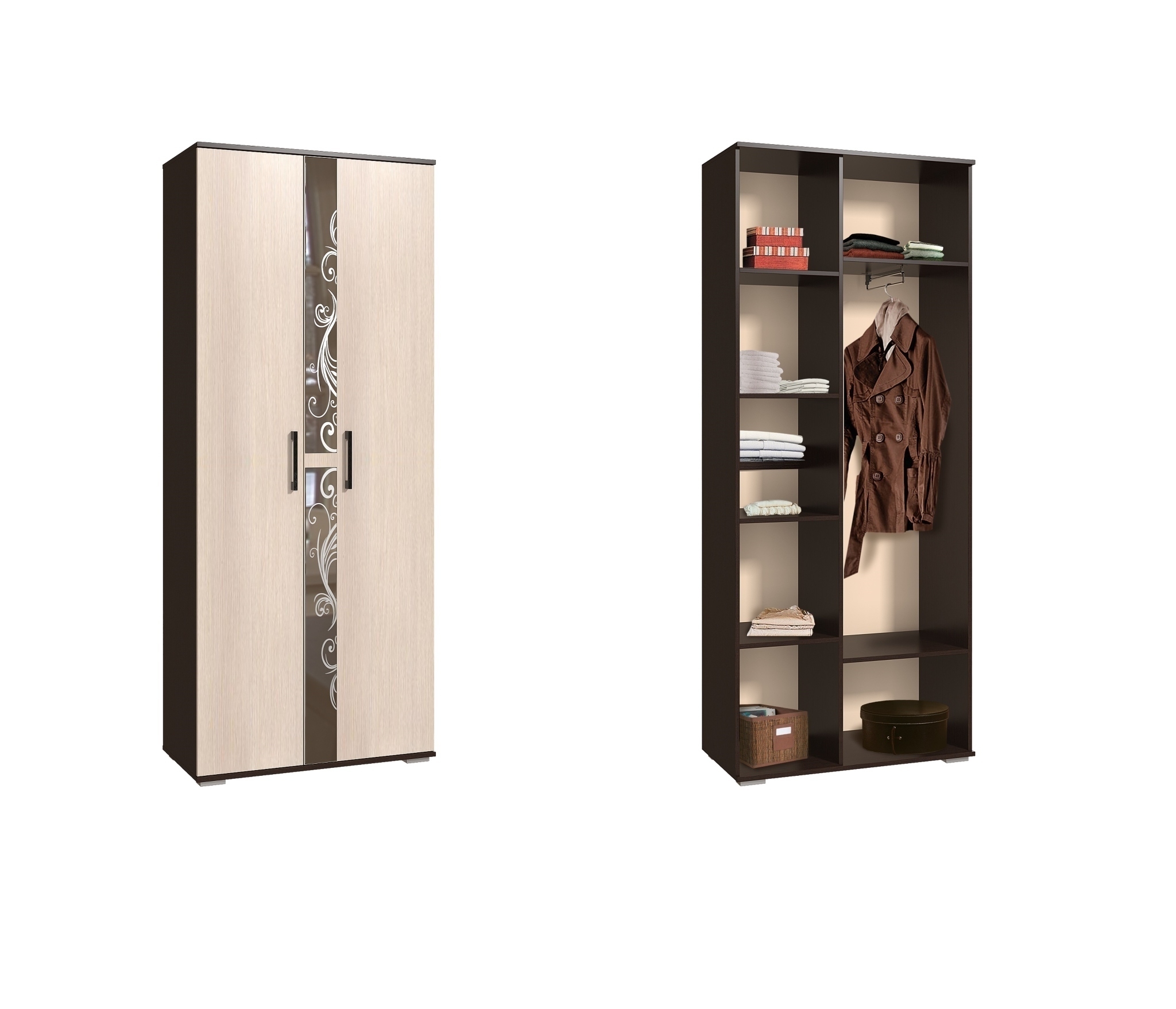 витражная стеклянная дверца, набор стеклянных полок и зеркальная стенка