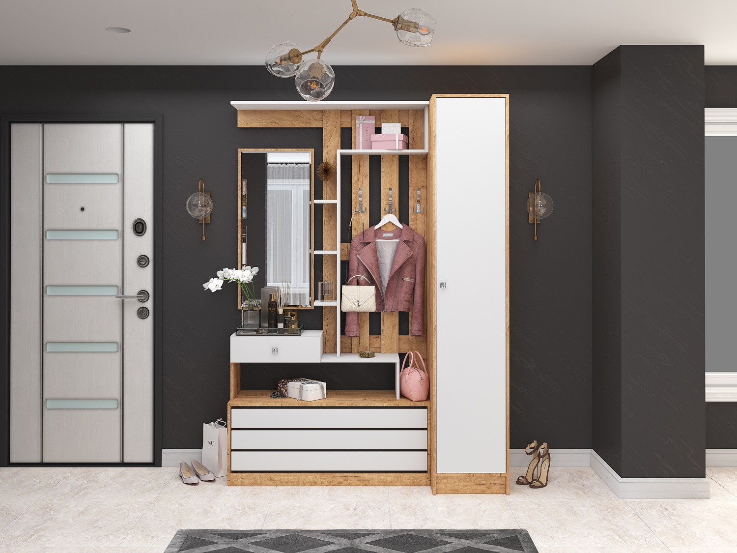 Закрытый шкаф-пенал - незаменимый элемент мебели в любой прихожей. Пенал из коллекции Ямайка станет отличным вариантом организации хранения в малогабаритной входной зоне благодаря ширине всего в 40 см и глубине в 50 см. Внутри шкафа - вместительная продольная штанга и полка-антресоль. Шкаф выполнен в 4-х трендовых декорах, поэтому Вы сможете подобрать для себя оптимальный вариант.