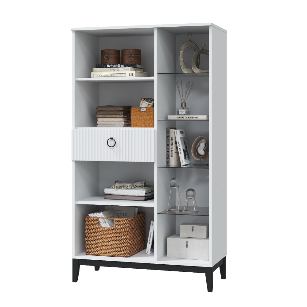 Шкаф-витрина с дверцей и ящиком Шарлиз - лаконичный предмет мебели, который создан, чтобы украсить современную гостиную. Шкаф разделен на две зоны. Ниша со стеклом подойдет для хранения книг, посуды и предметов декора. Глухая часть оснащена закрытыми полками и ящиком, что позволит разместить различные по размеру и назначению вещи.