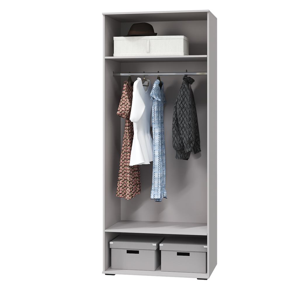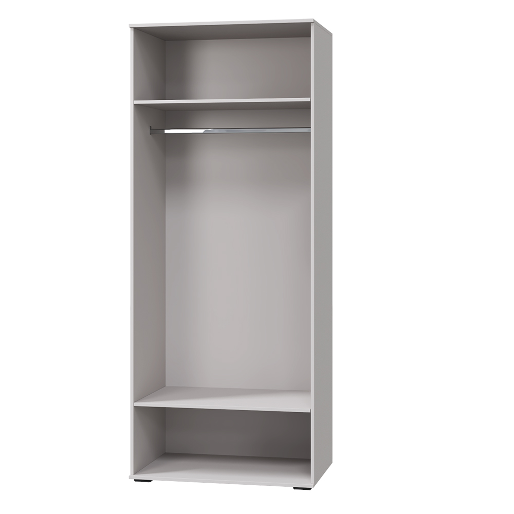 Внутри шкафа для одежды Кашемир имеются полки и штанга для одежды.
