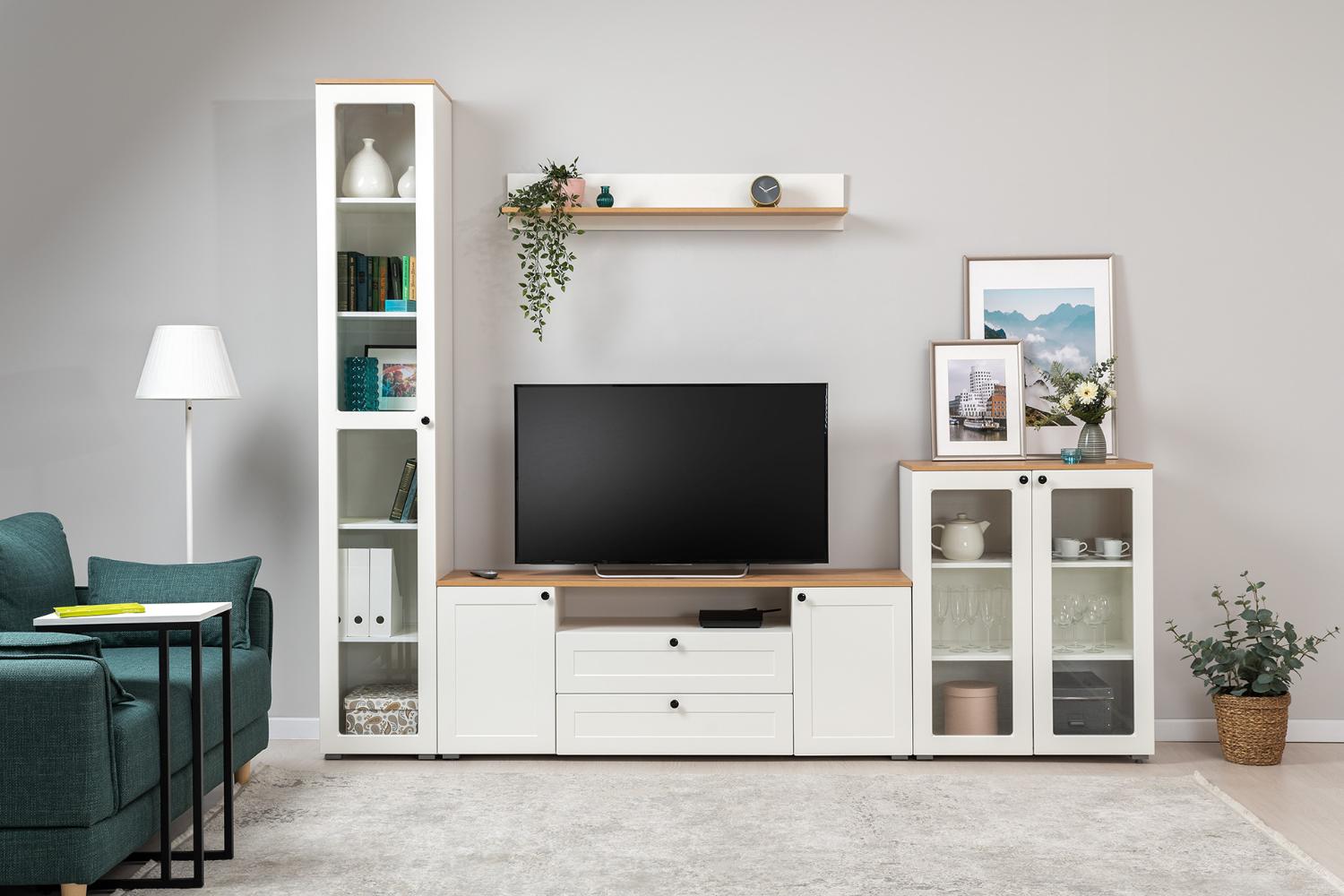 Остин — это современная классическая гостиная, отличающаяся лаконичностью, строгими линиями и контрастной фурнитурой. Она сочетает в себе функциональность и элегантность. Коллекция доступна в двух цветах: белом и графитовом с тёплым древесным декором.