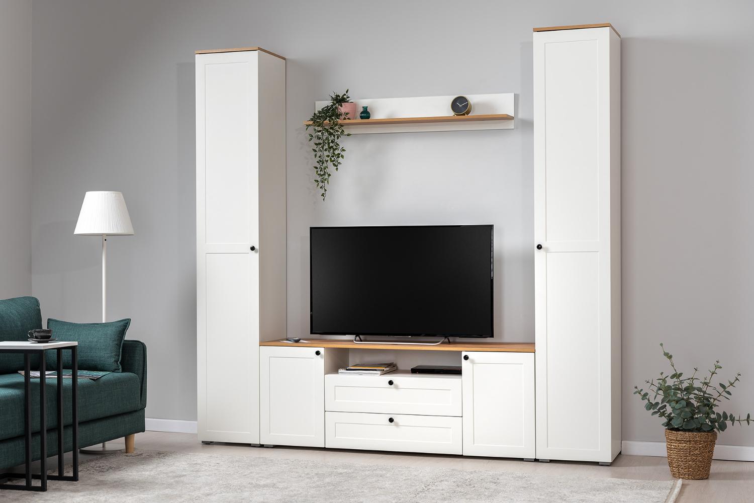 Остин — это современная классическая гостиная, отличающаяся лаконичностью, строгими линиями и контрастной фурнитурой. Она сочетает в себе функциональность и элегантность. Коллекция доступна в двух цветах: белом и графитовом с тёплым древесным декором.
