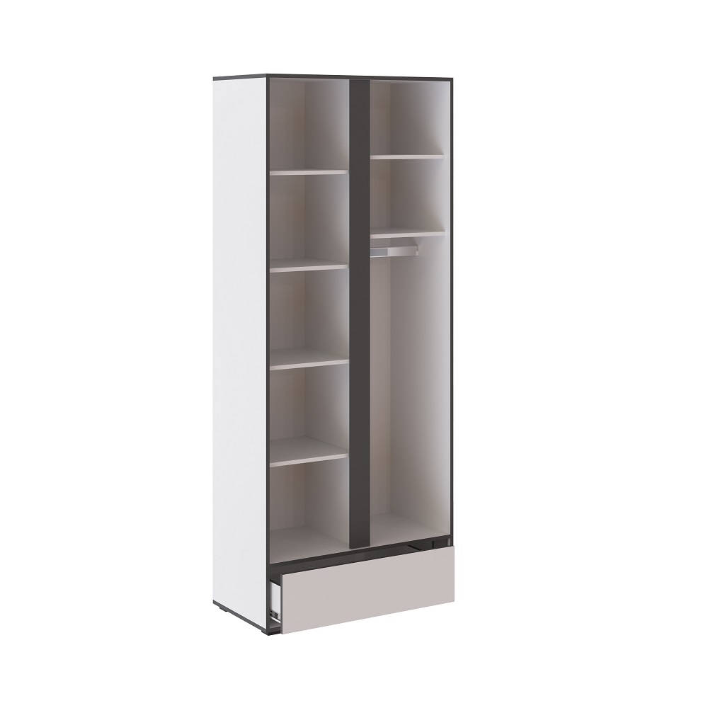 Шкаф для одежды и белья Асцелла – это стильное и функциональное решение для вашего интерьера. Его элегантный дизайн и современная отделка создают атмосферу свежести и простора. Особенностью данного шкафа является выдвижной ящик на шариковых направляющих, который отлично подойдет для хранения различных предметов.