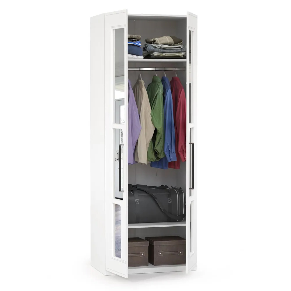 Шкаф для одежды Валенсия - это стильное и функциональное решение для вашего интерьера. Его элегантный дизайн и современная отделка создают атмосферу свежести и простора. Этот шкаф оборудован удобными дверьми с ручками, а створки выполнены в виде зеркал, что поможет визуально увеличить пространство комнаты.