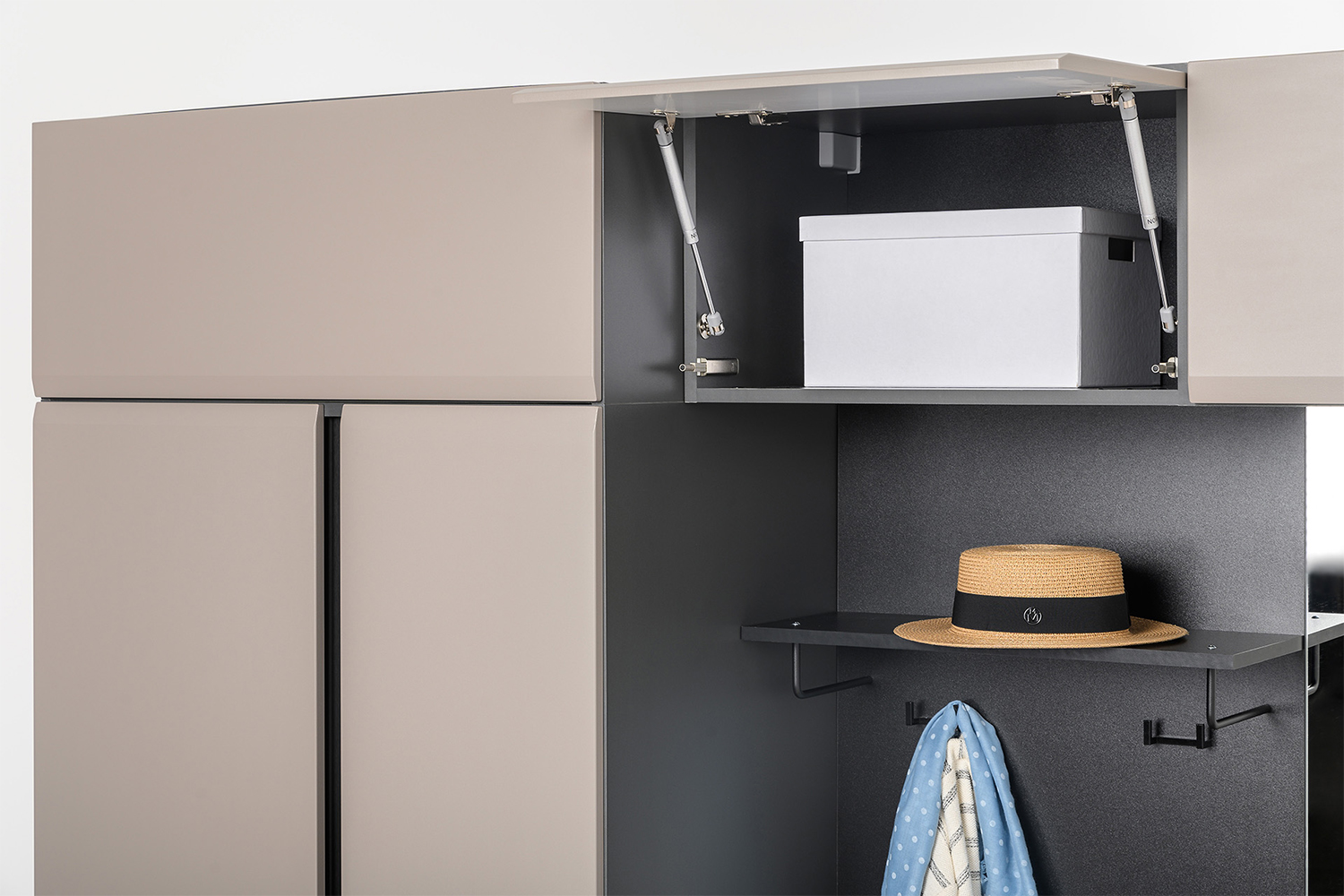 Газлифты обеспечивают легкость и комфортность открытия дверок шкафа, что особенно удобно для частого использования.