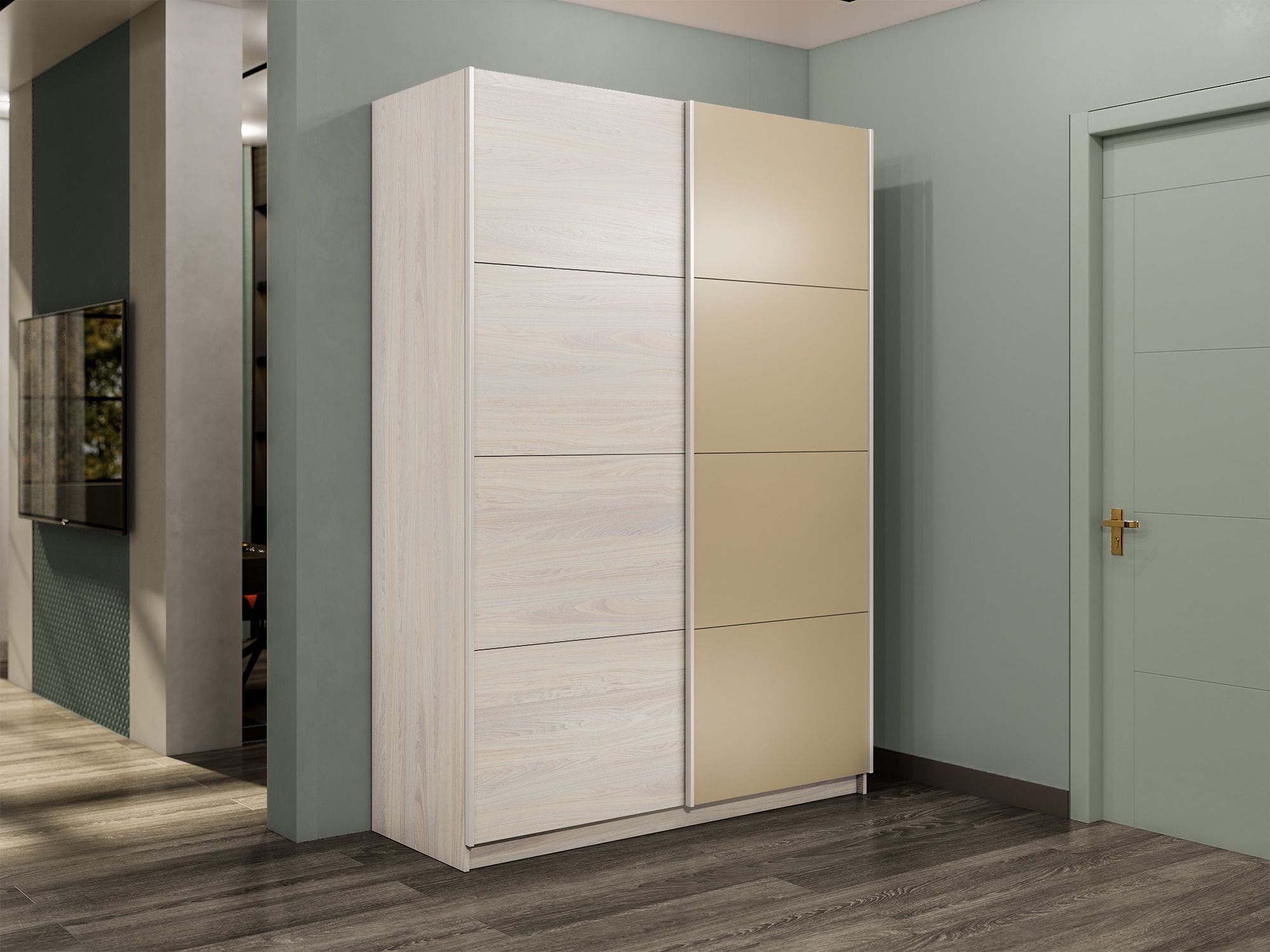 Отзывы о Столплит Шкаф-купе Прайм 2-х дверный ДСП/Стекло фисташка/Доводчики 160х57х230 Ясень Анкор светлый
