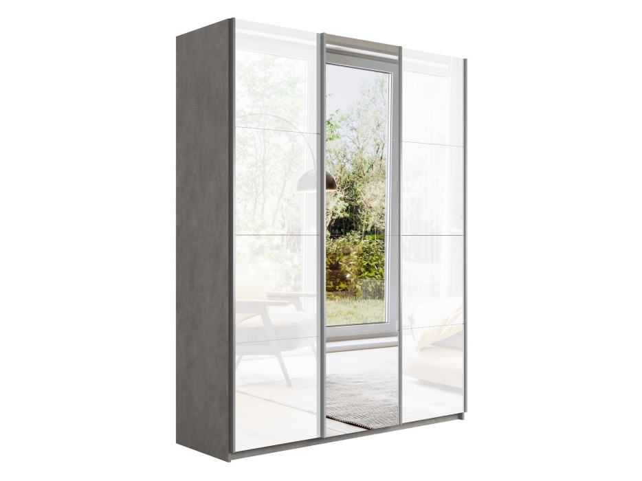 Отзывы о Столплит Шкаф Прайм трио 2-ва Стекла белого+ Зеркало 2300 х 1800 х 570 Бетон серый