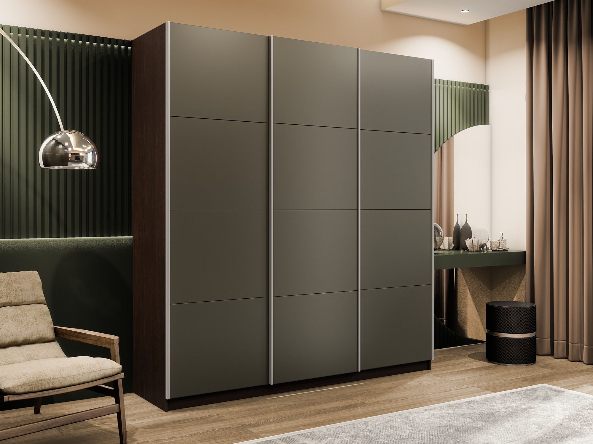 Отзывы о Столплит Шкаф-купе Прайм 3-х дверный Стекла хаки/Доводчики 210х57х230 Венге