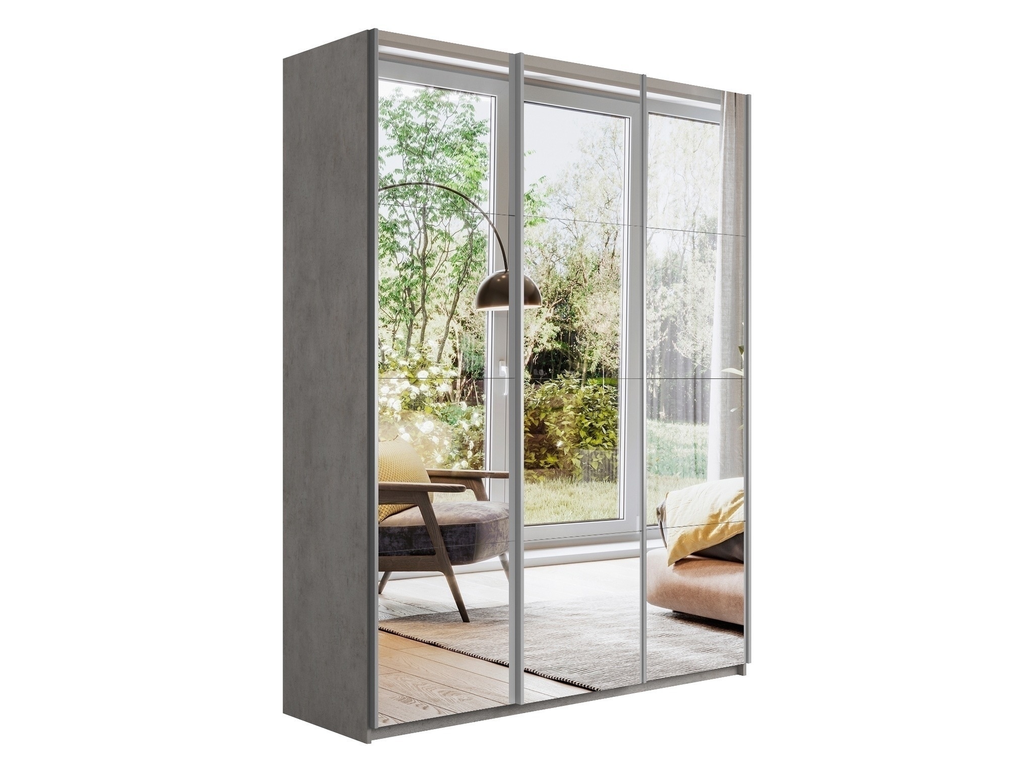 Отзывы о Столплит Шкаф Прайм трио Зеркало 2300 x 2100 x 570 Бетон серый
