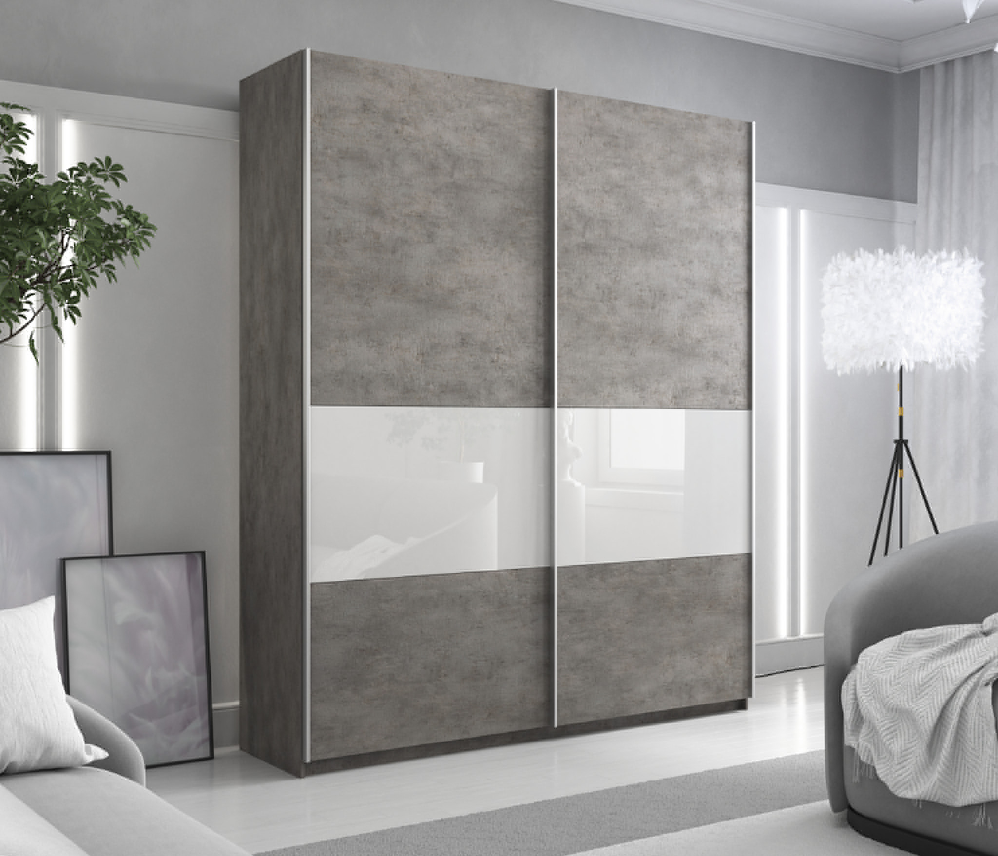 Отзывы о Столплит Шкаф-купе Прайм ДСП/Стекло белое, 220х57х230 бетон