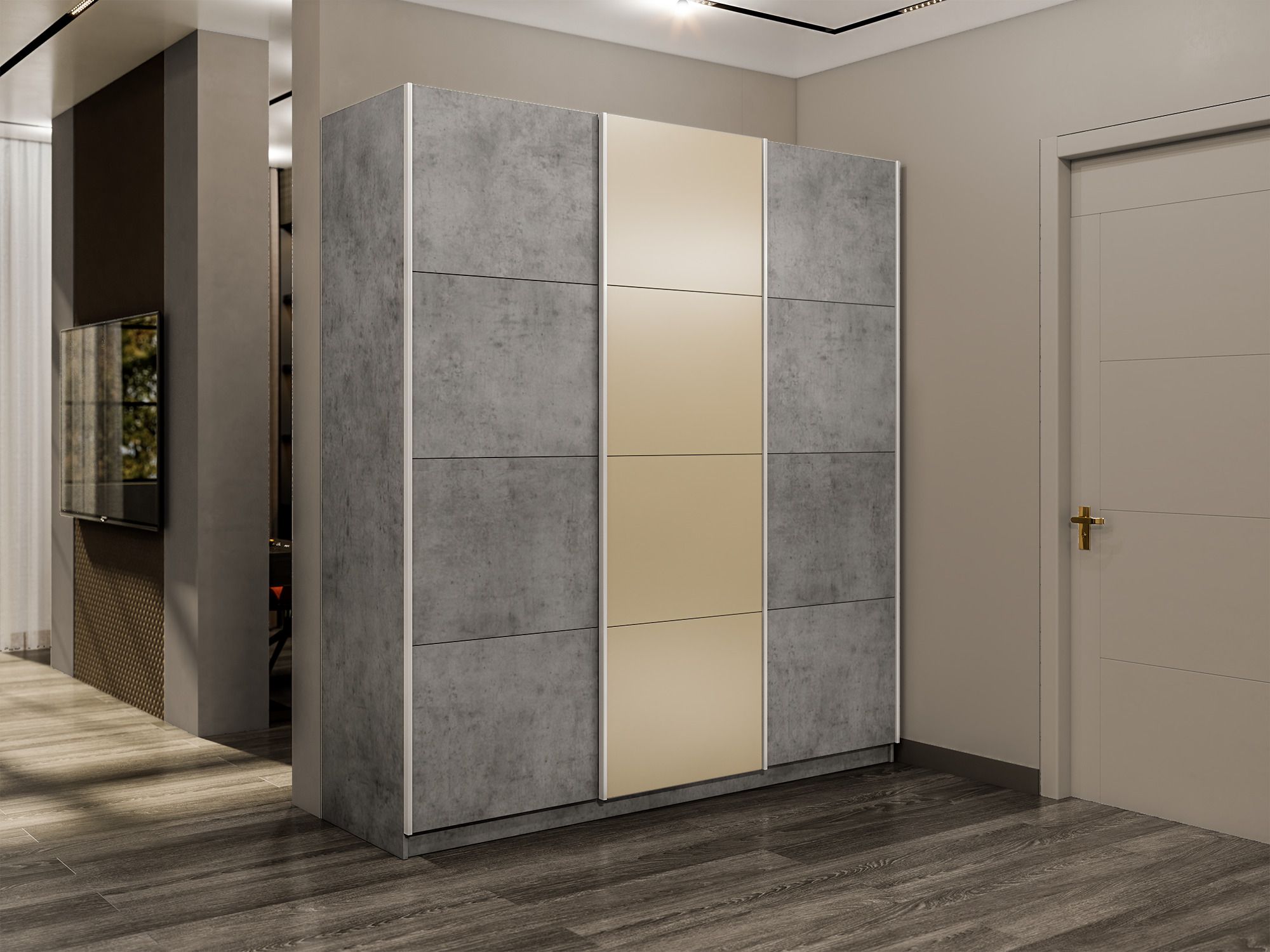 Отзывы о Столплит Шкаф-купе Прайм Широкий 3-х дверный ДСП/Стекла фисташка/Доводчики 240х57х230 Бетон