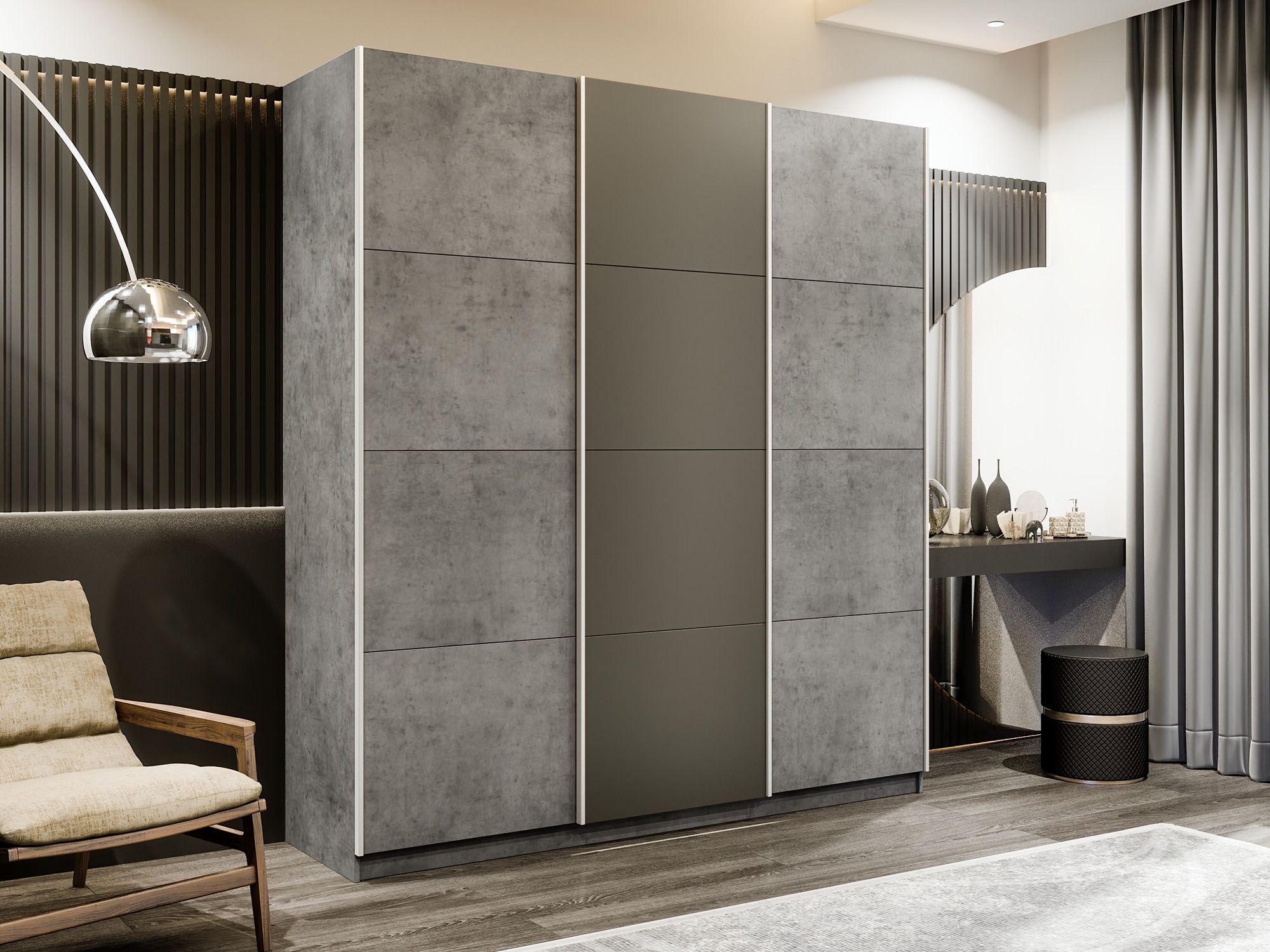 Отзывы о Столплит Шкаф-купе Прайм Широкий 3-х дверный ДСП/Стекла хаки/Доводчики 240х57х230 Бетон