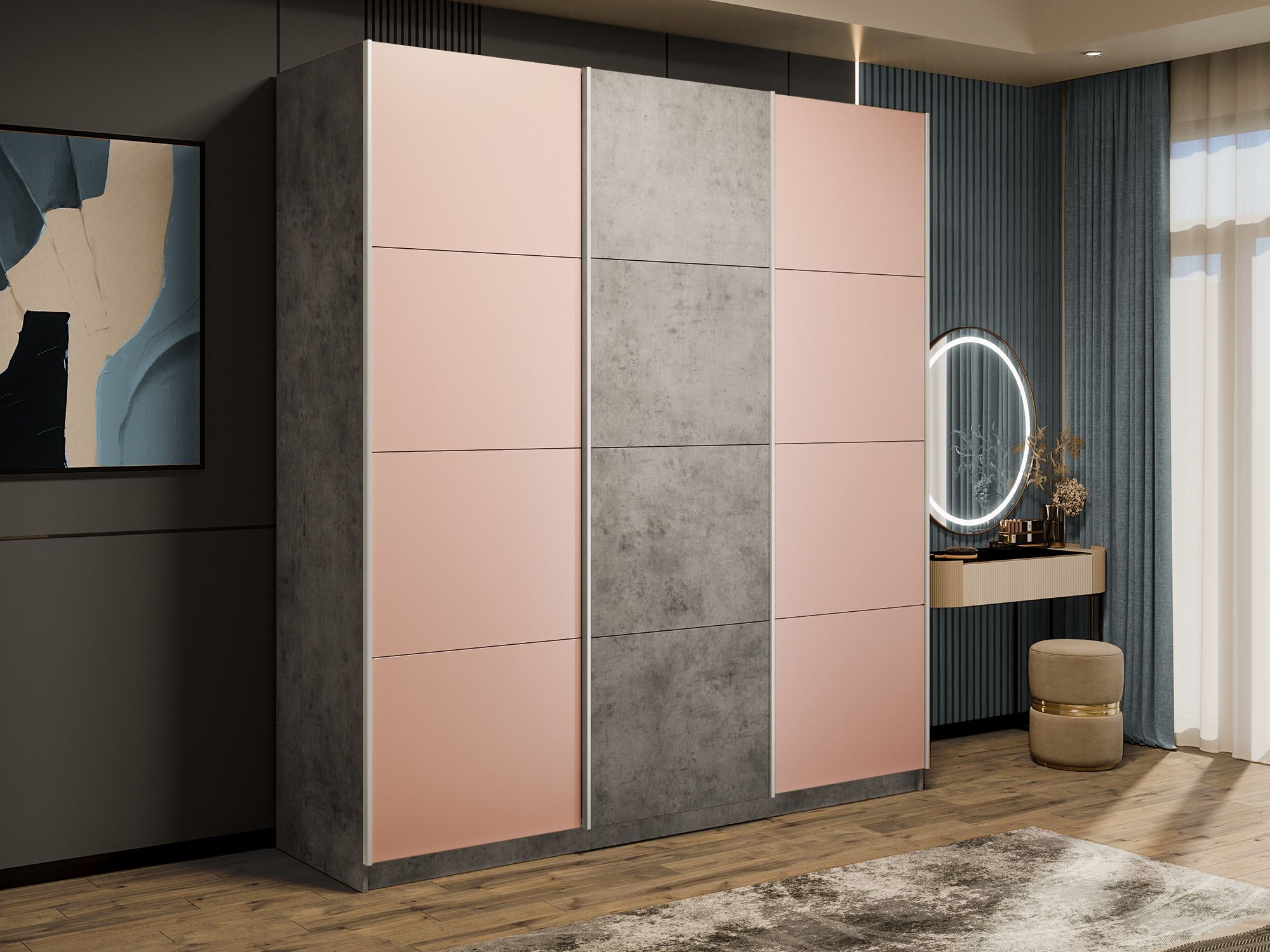 Отзывы о Столплит Шкаф-купе Прайм Широкий 3-х дверный Стекла пудра/ДСП/Доводчики 240х57х230 Бетон