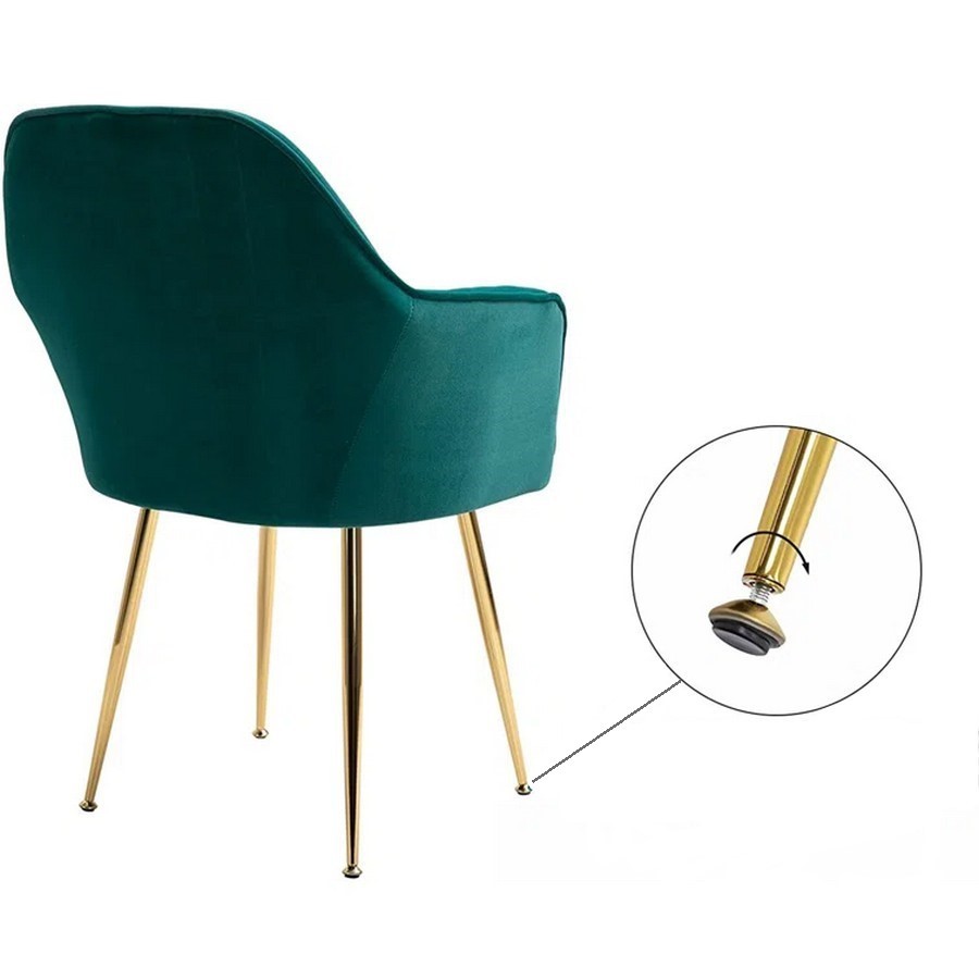 Бренд HESBY представляет вашему вниманию стильный и комфортный мягкий стул-кресло Tranquil Synchrony с подлокотниками, который станет изюминкой вашего интерьера. Обивка из мягкого велюра насыщенного цвета придаст уют и элегантность вашему пространству, а золотые металлические ножки добавят нотку роскоши и современности.Кресло выполнено с акцентом на максимальный комфорт: мягкое сиденье и удобные подлокотники создают идеальные условия для отдыха и расслабления. Регулируемые подпятники на ножках обеспечивают устойчивость и позволяют использовать кресло на различных поверхностях, не беспокоясь о неровностях пола.Размеры стула-кресла: высота — 88 см, ширина — 59 см, глубина — 50 см, высота сиденья — 49 см. Максимальная нагрузка составляет 150 кг, что подтверждает надежность и прочность конструкции.Этот стул-кресло идеально подходит как для домашнего интерьера, так и для офисных пространств, комбинируя в себе стиль и функциональность. Сделайте ваше пространство более комфортным и красивым с этим уникальным изделием!