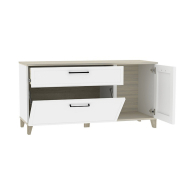 Тумба под телевизор Аурелио 33 — это стильный и функциональный элемент мебели, который станет отличным элементов Вашего интерьера. Изготовленная из качественных материалов, она обеспечит надежную поддержку для телевизора и других медиа-устройств. Модуль имеет выкатной ящик на направляющих плавного выдвижения, а также откидную створку, за которой скрывается закрытая ниша.