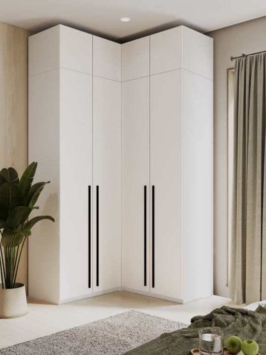Раскладные двери обеспечивают легкий доступ к содержимому, а внутренние ящики помогут поддерживать порядок и организованность. Этот угловой шкаф подходит не только для хранения одежды, но и для использования в прихожей или гостиной.
