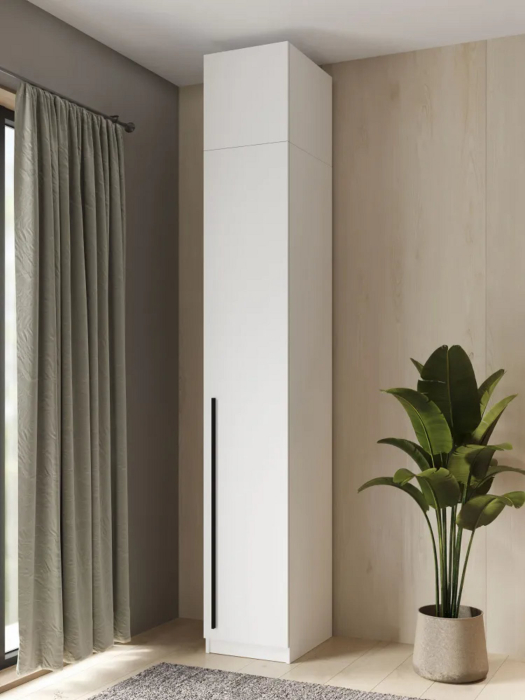 Удобная распашная конструкция позволяет быстро и легко открывать двери, обеспечивая доступ к вашим вещам. Хотя шкаф однодверный, его внутреннее пространство организовано таким образом, чтобы вы могли удобно размещать одежду, аксессуары и другие предметы. Внутри достаточно места для размещения всевозможных вещей, что делает этот шкаф идеальным выбором для хранения одежды.