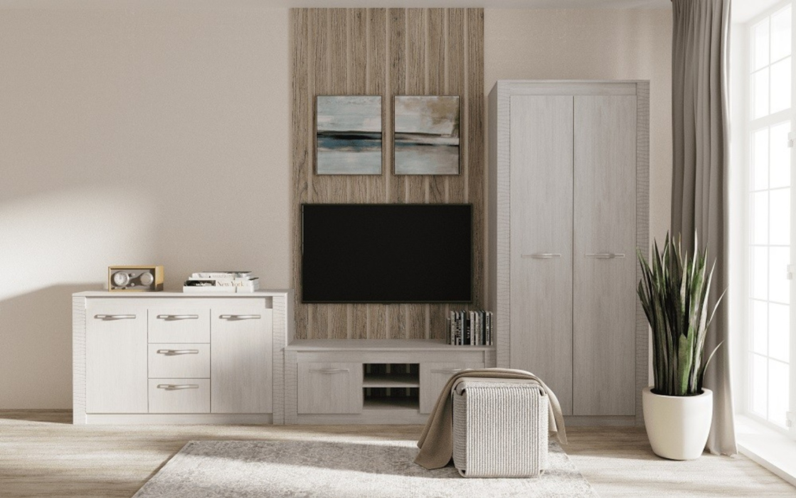 Представляем Вашему вниманию коллекцию для гостиной Монако. Светлый древесный оттенок, геометрический декор из МДФ, разнообразие модулей и безусловное качество изделий делает мебель Монако хитом на рынке корпусной мебели. Всего нескольких модулей хватит для того, чтобы оформить ТВ-зону и зону хранения в гостиной. Вы останетесь довольны!