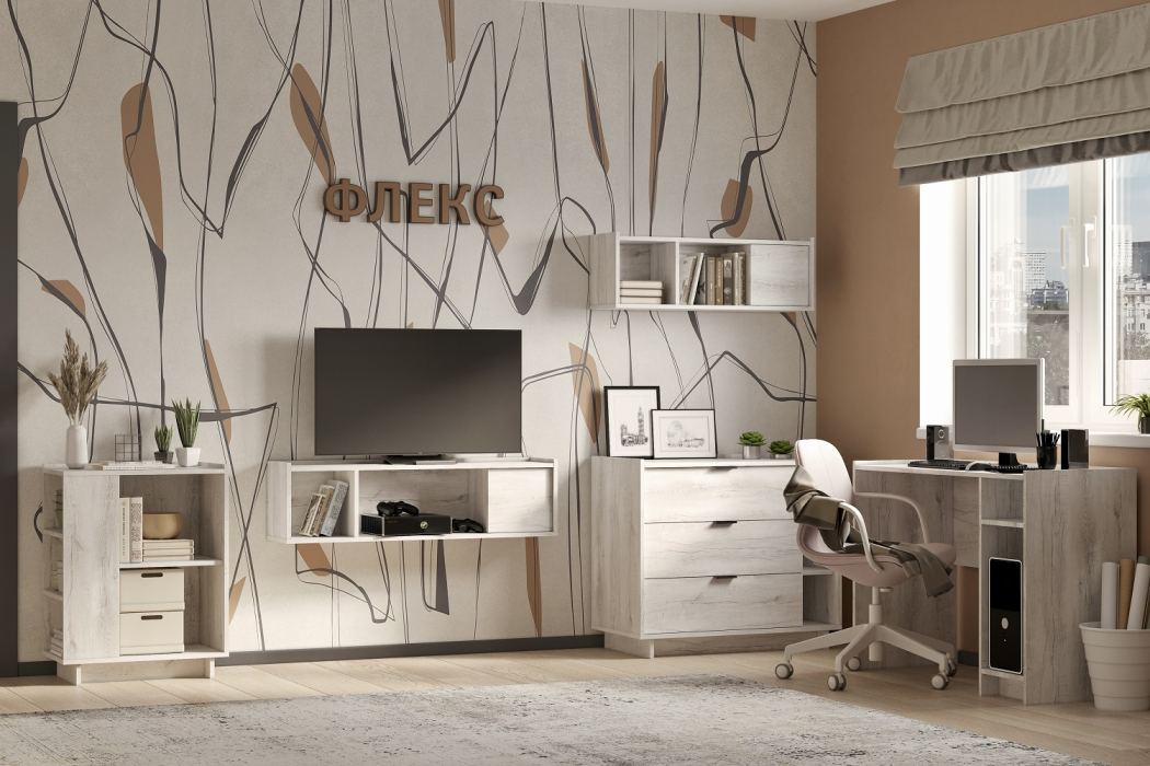 Гостиная ФЛЕКС — универсальное решение для вашего дома. Она сочетает в себе комфорт, функциональность и стильный дизайн, позволяя создать уютную атмосферу для отдыха, работы и приёма гостей. Модульная конструкция ФЛЕКС позволяет легко комбинировать элементы, адаптируя пространство под индивидуальные потребности. Напольные модули с притопленным цоколем обеспечивают удобство установки и позволяют избежать проблем с плинтусами. Благодаря этому гостиная ФЛЕКС станет идеальным местом для отдыха и релаксации, создавая гармоничную обстановку и поднимая настроение.