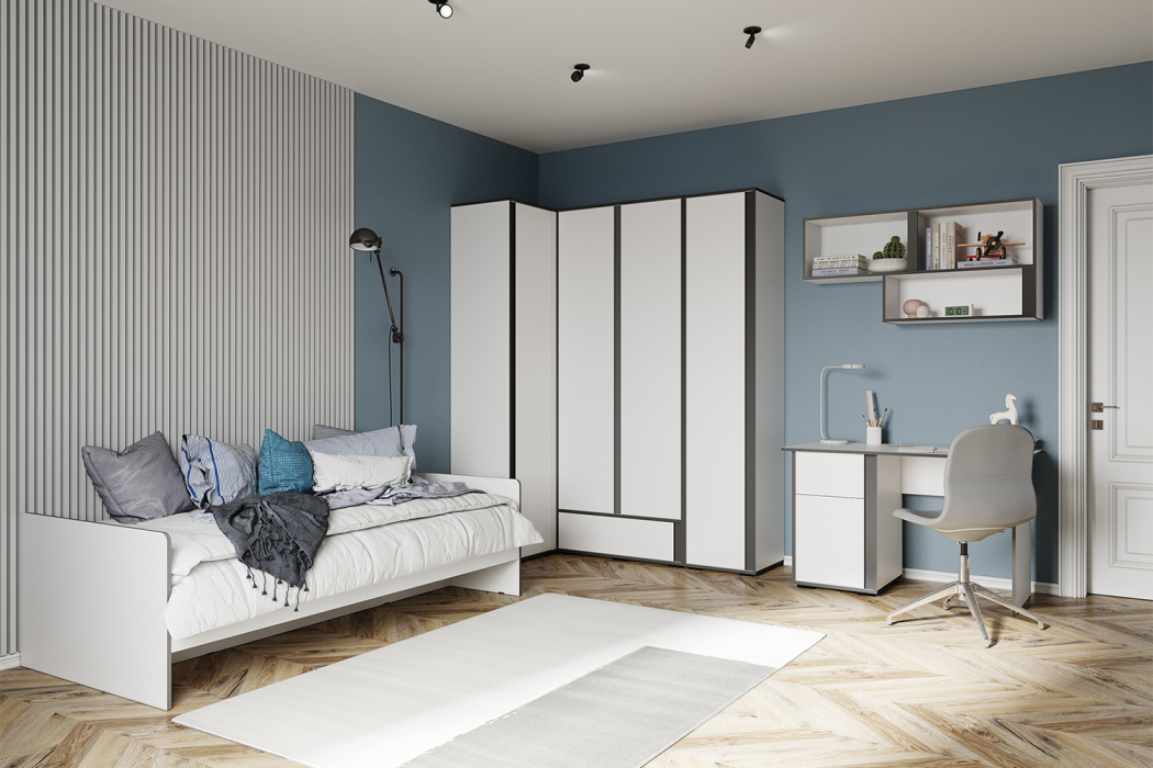 Детская Асцелла — это уютное и функциональное пространство, созданное для комфортного обучения и отдыха ребенка. Шкафы с полками и ящиками идеально подойдут для хранения одежды, книг и разных аксессуаров. Шкафы выполнены в стильном дизайне и помогут поддерживать порядок в комнате, позволяя ребенку легко находить необходимые вещи. Письменный стол обеспечит достаточно пространства для учебы и творчества. Он оснащен выдвижным ящиком на шариковых направляющих, а также двумя полками для хранения необходимых предметов. Над столом можно разместить навесную открытую полку, в которой легко разместить книги и прочие акессуары.