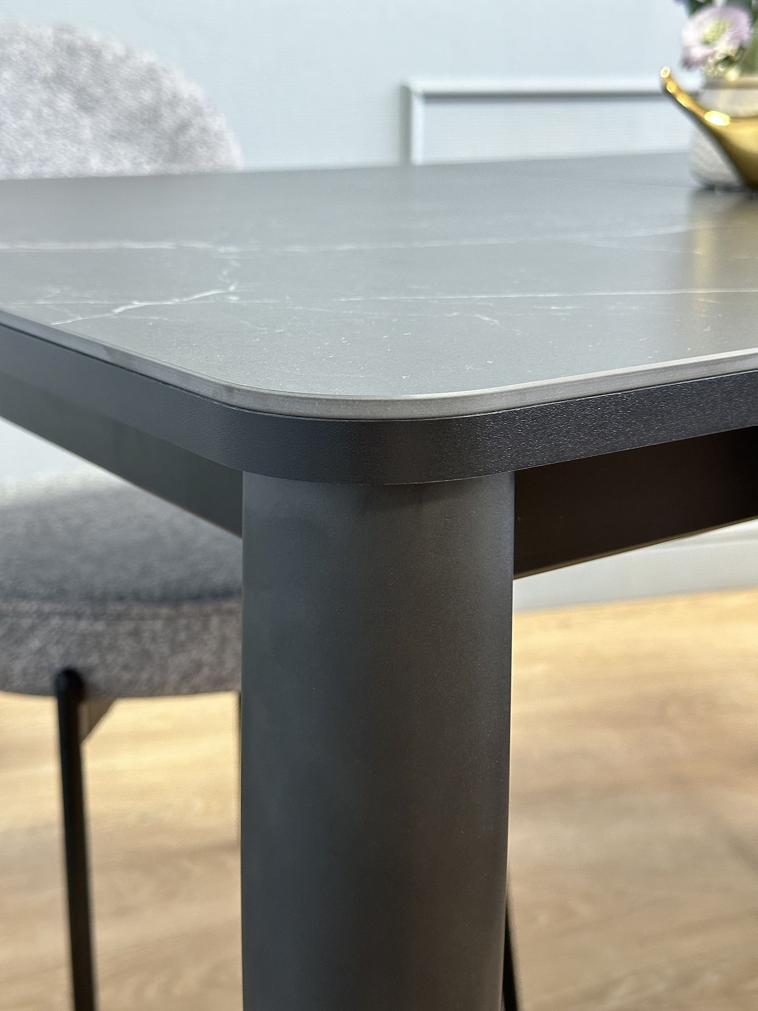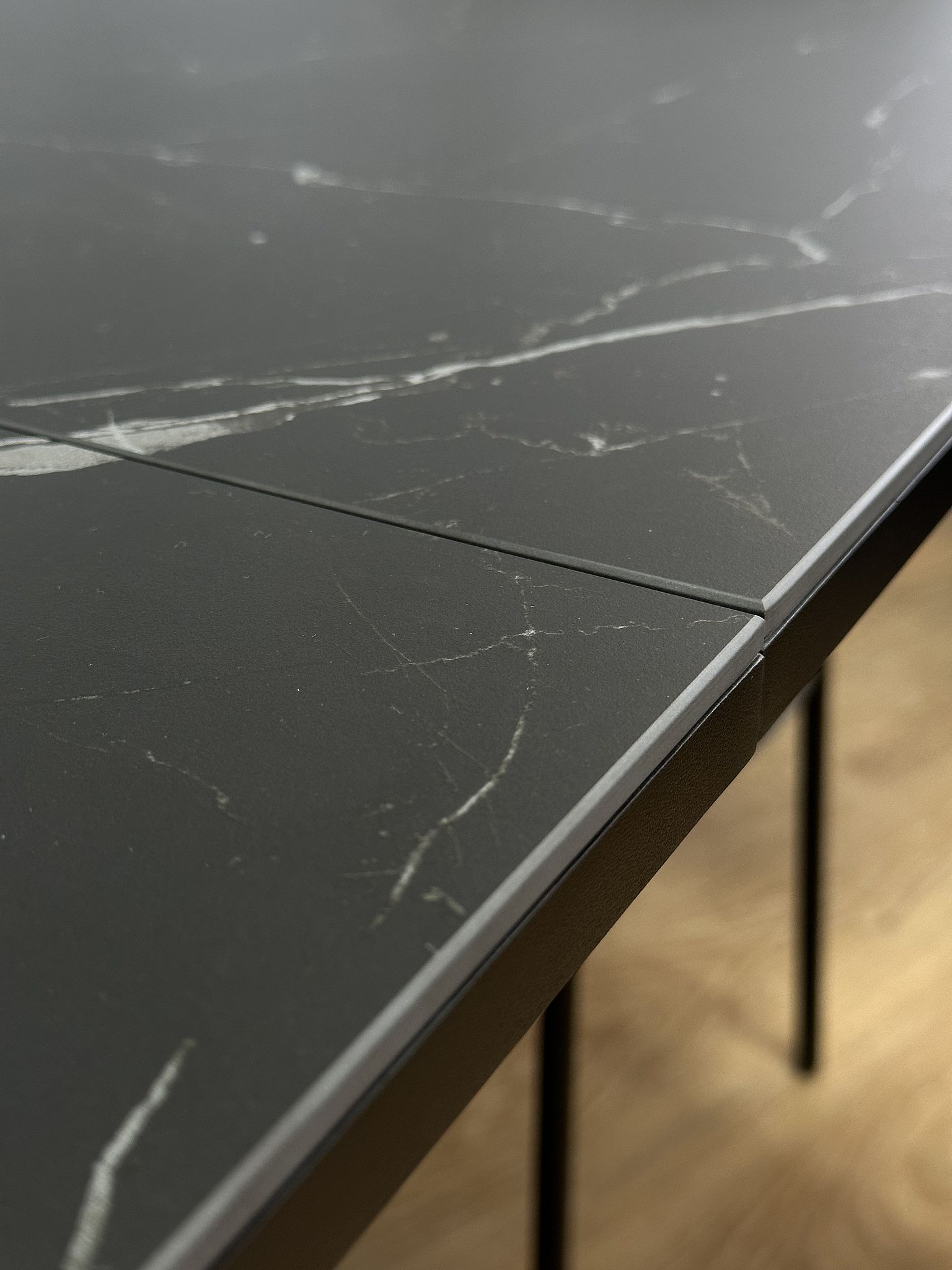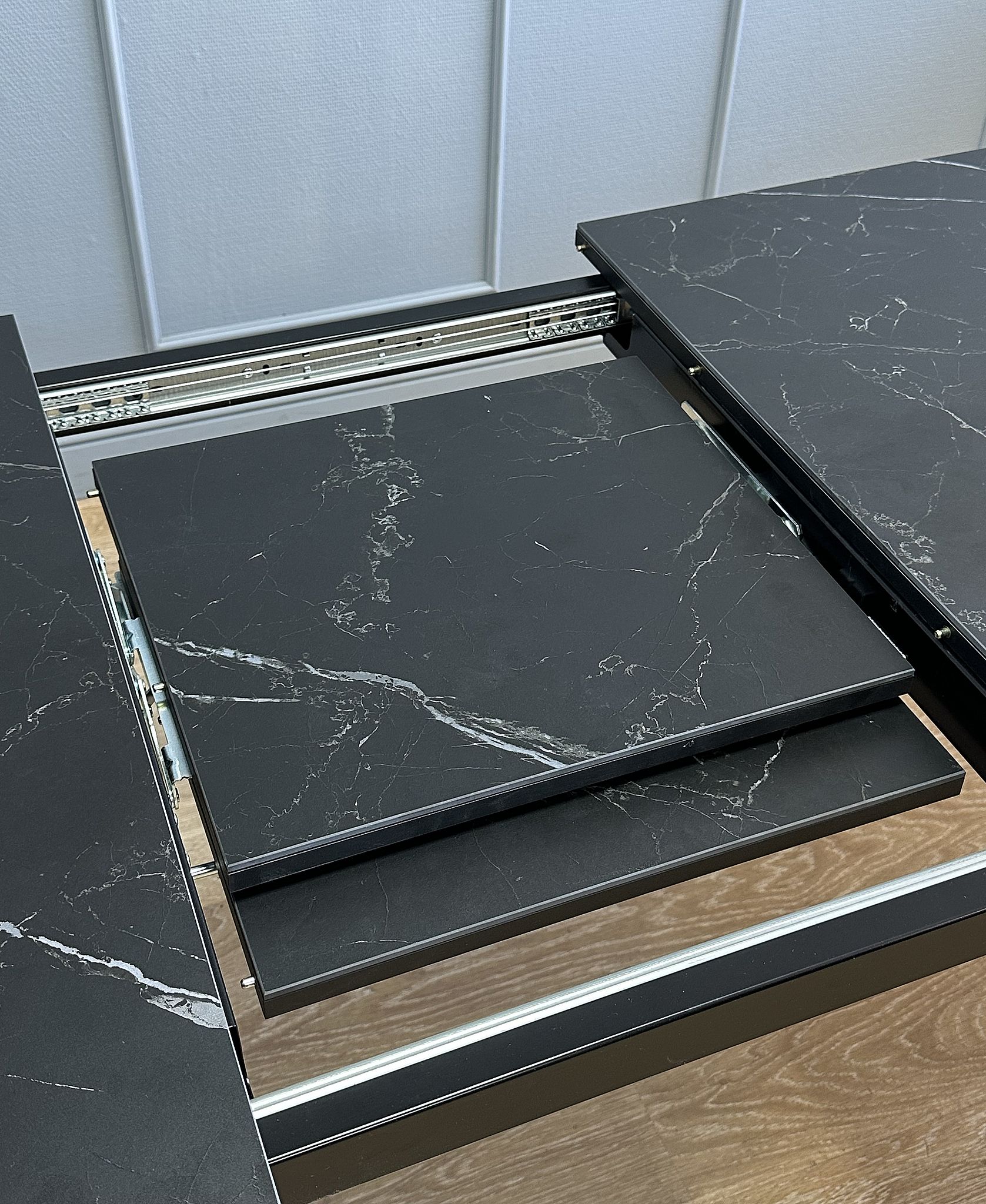 Стол с керамической столешницей и красивыми, функциональными опорами. Керамических столов такого размера очень мало, а размер 120*80 см оптимален для кухни до 13 кв. м. Система раскладки увеличивает стол еще на 45 см благодаря синхронному механизму раздвижения и прогрессивного механизму вставки "дельфин". Вставка с керамикой очень тяжелая и требует специального механизма, предназначенного для керамики. Стол сможет разложить даже ребенок