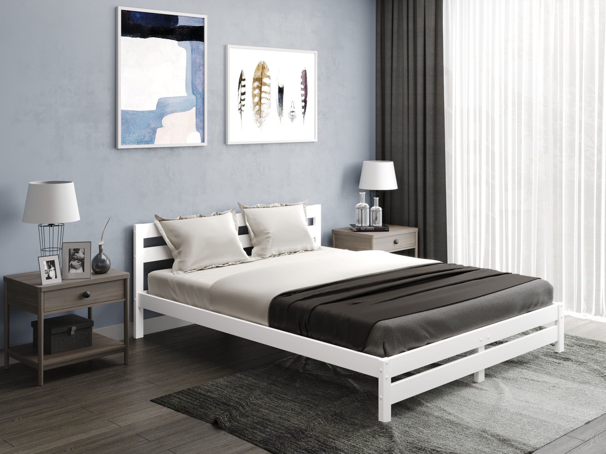 Благодаря 5 опорным стойкам по середине двуспальной кровати устойчивость повышена, чтобы выдерживать максимальный вес 200 кг.