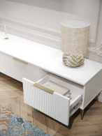 Тумба под ТВ Афина АФ-04 – это стильная и функциональная модель с рельефными фасадами, которая отлично впишется в современный интерьер.