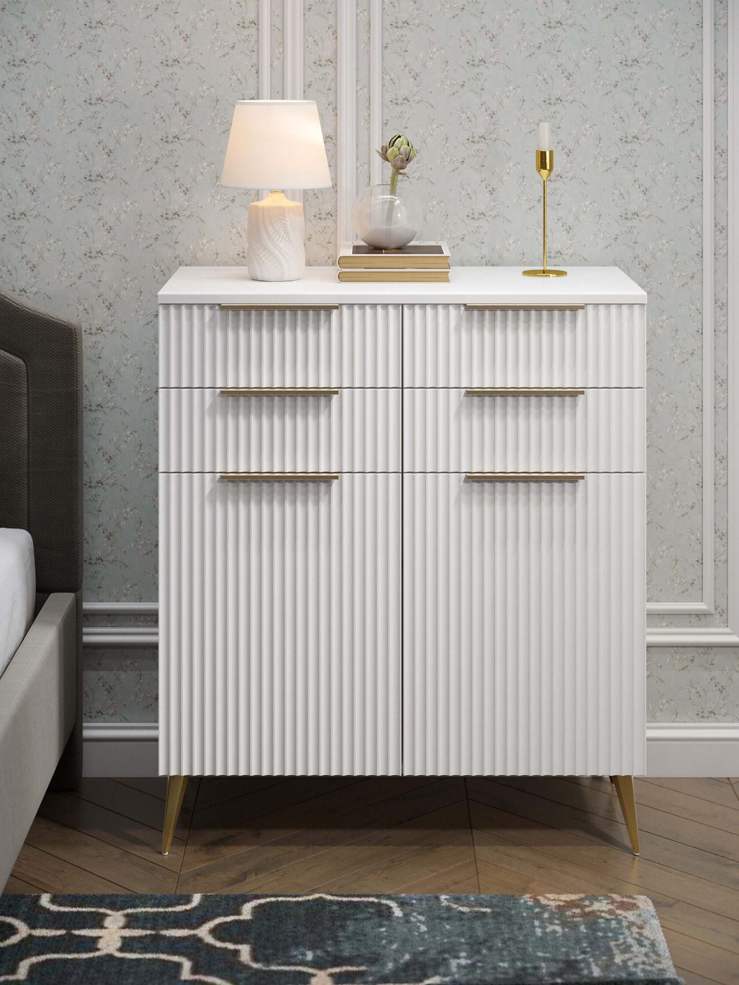 Комод Афина АФ-06 – это стильная и функциональная модель с рельефными фасадами, которая отлично впишется в современный интерьер.