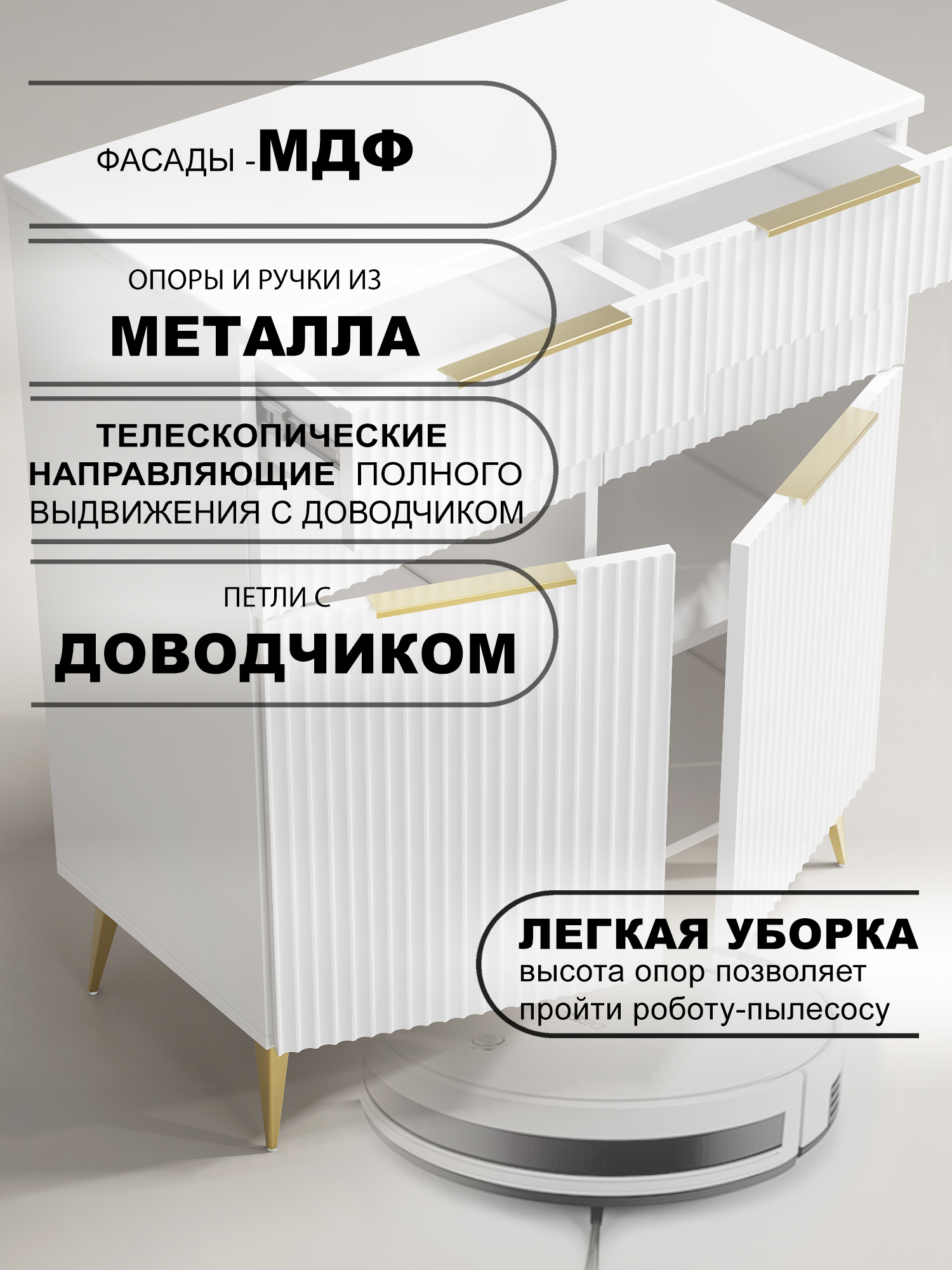 Четыре выдвижных ящика на телескопических направляющих