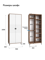 Размеры: 900х2200х550 мм (ширина/высота/глубина)