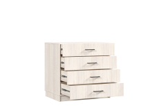 Комод «Классика», оснащённый четырьмя выдвижными ящиками с системой полного выдвижения, представляет собой многофункциональный предмет мебели, идеально подходящий для различных функциональных зон жилого пространства, таких как гостиная, кабинет или прихожая. Корпус комода изготовлен из ламинированной древесно-стружечной плиты (ЛДСП) толщиной 16 мм, что обеспечивает высокую прочность и долговечность конструкции. Эта модель демонстрирует превосходное сочетание эстетических и практических качеств, что делает её востребованным элементом современного интерьера.