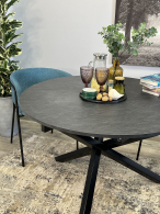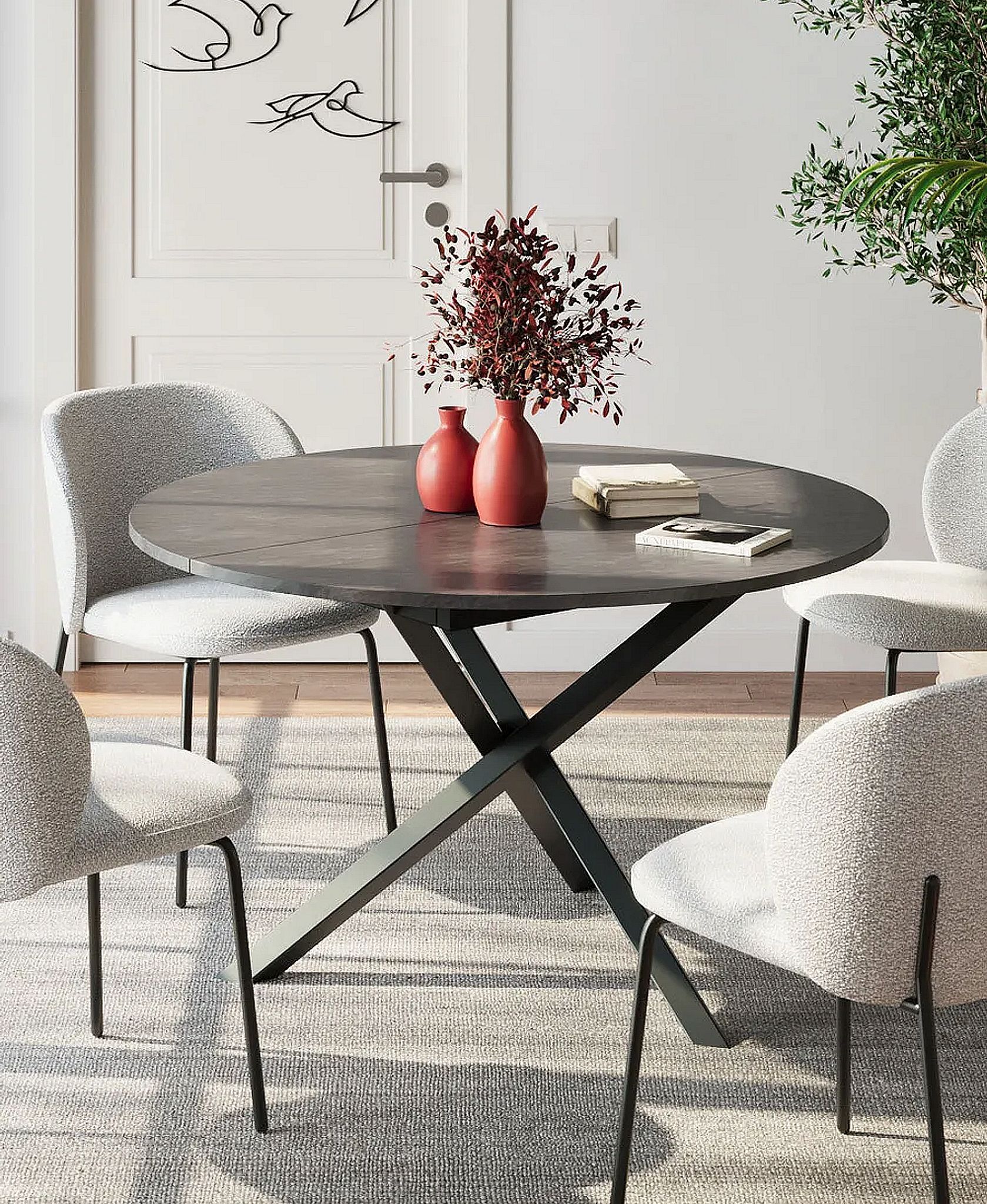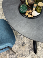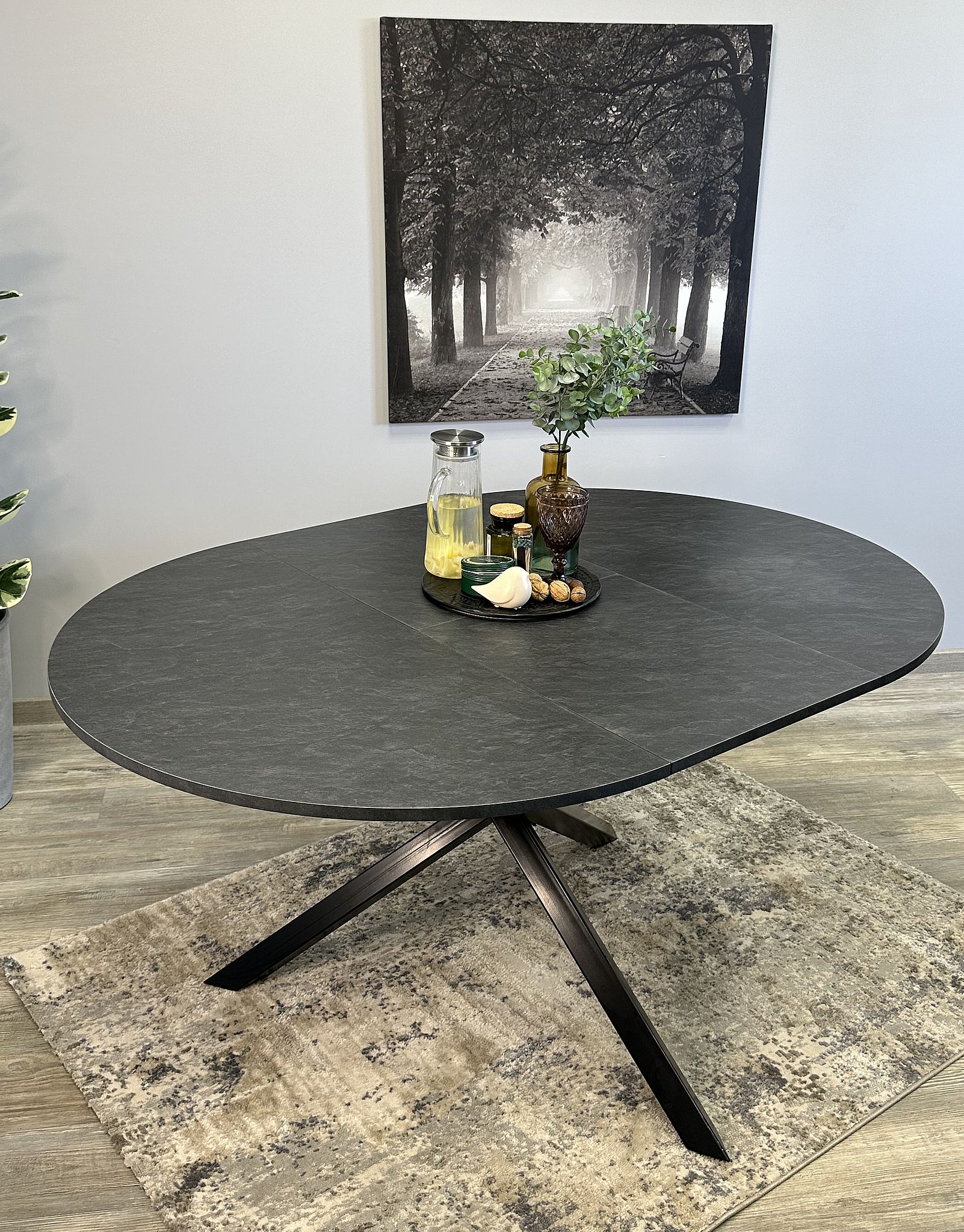 Стол с круглой столешницей из ЛДСП Egger Premium 2024, надежными опорами из необычного профиля квадратного сечения и самой удобной системой раздвижения.