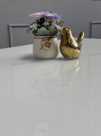 Стол со стеклом прекрасно выглядит и всегда идеально сочетается с белыми элементами, которые есть на каждой кухне. Он надежен, устойчив, с теплыми деревянными опорами.