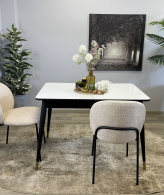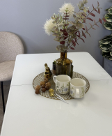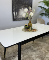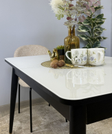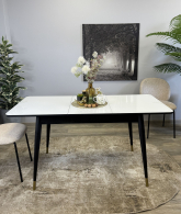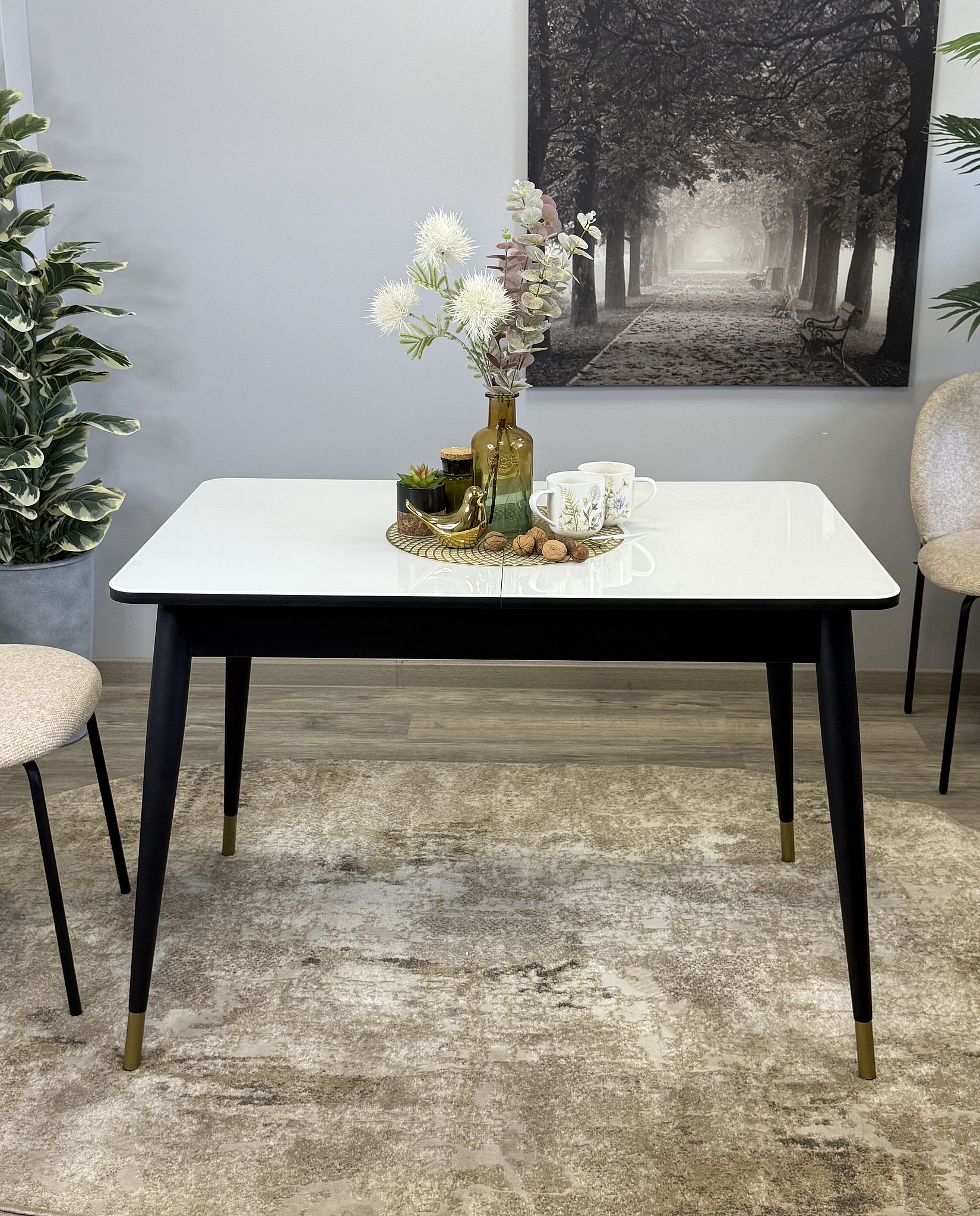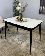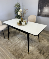 Стол со стеклом прекрасно выглядит и всегда идеально сочетается с белыми элементами, которые есть на каждой кухне. Он надежен, устойчив, с теплыми деревянными опорами.
