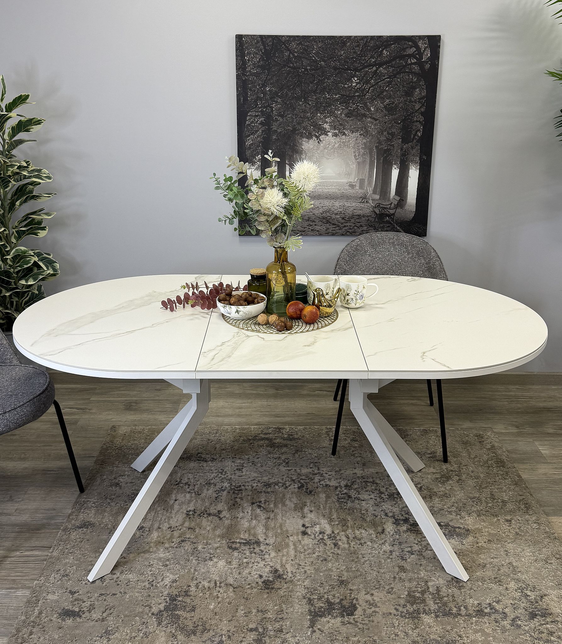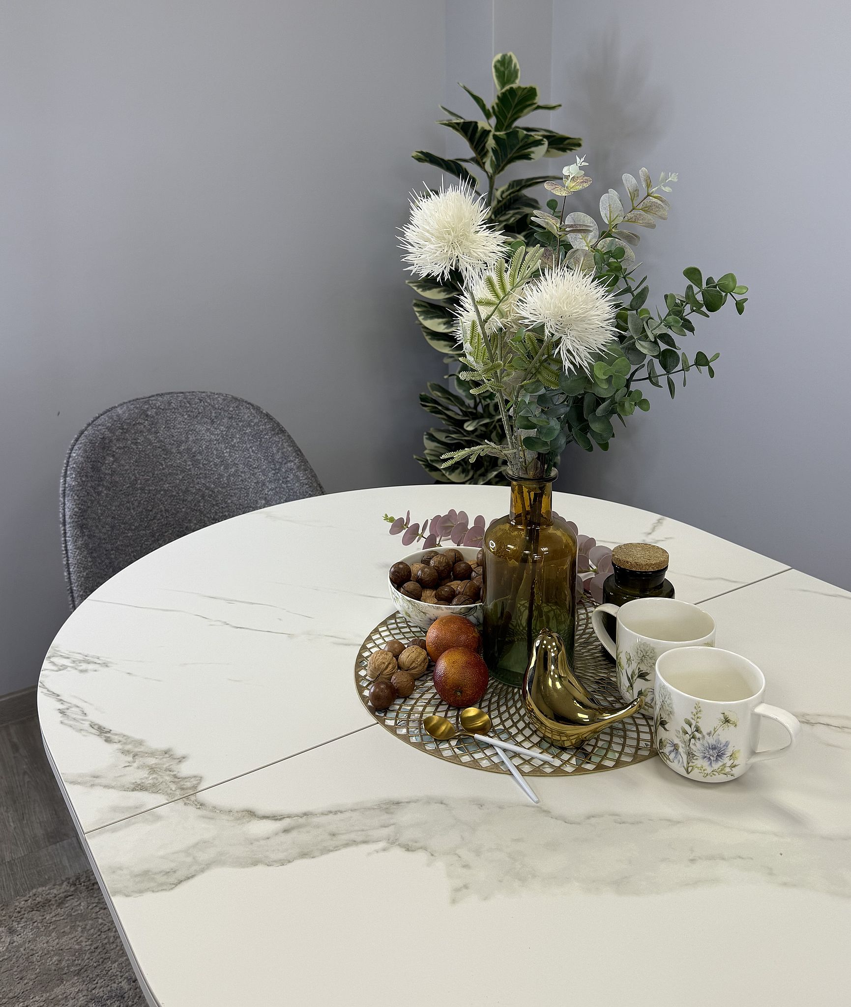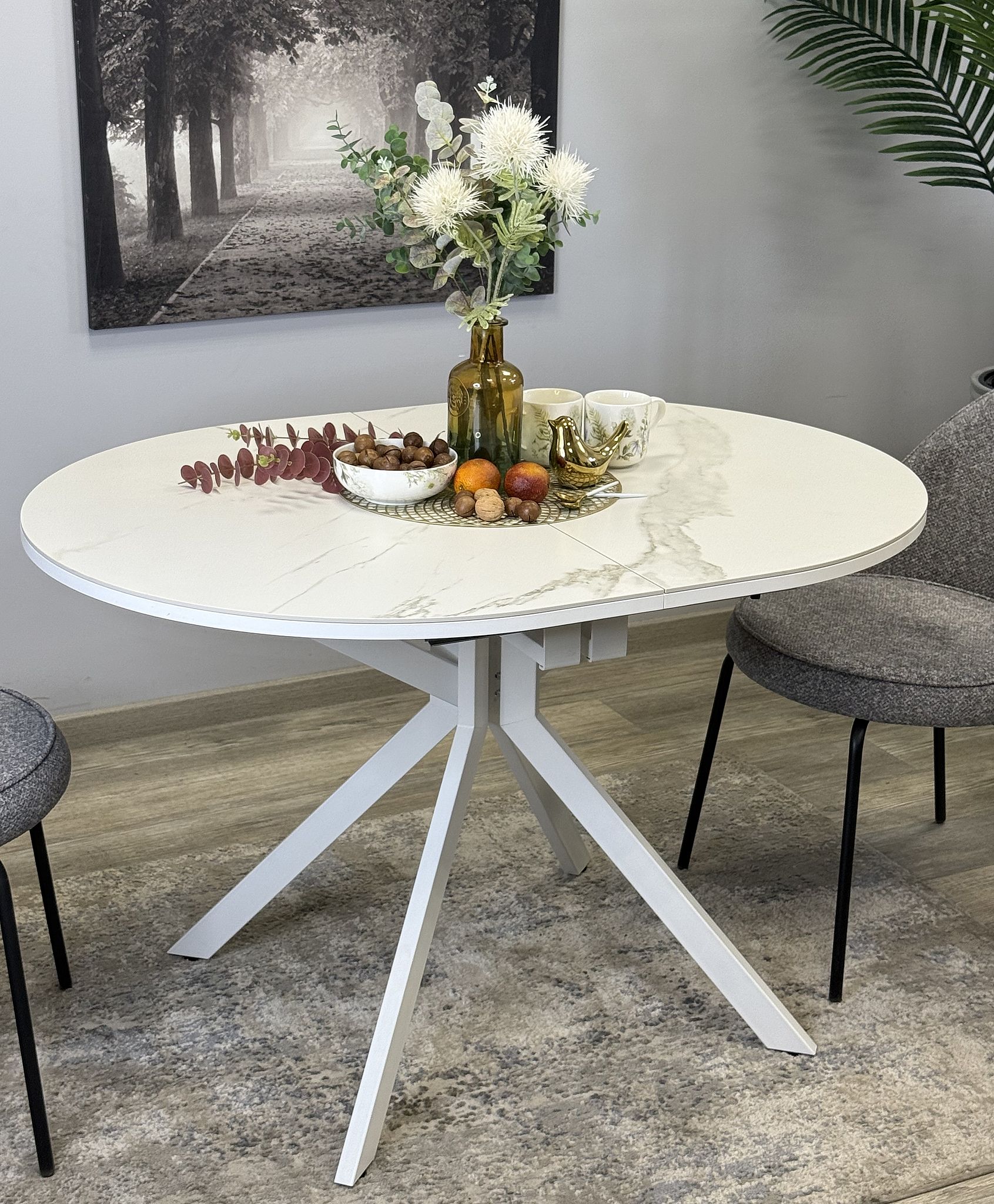 Современная семья оценит удобство этого лёгкого и прочного стола с большим надёжным механизмом раскладывания. Он имеет стильную овальную форму и может быть расположен вплотную к стене, что делает его идеальным выбором для любого интерьера.