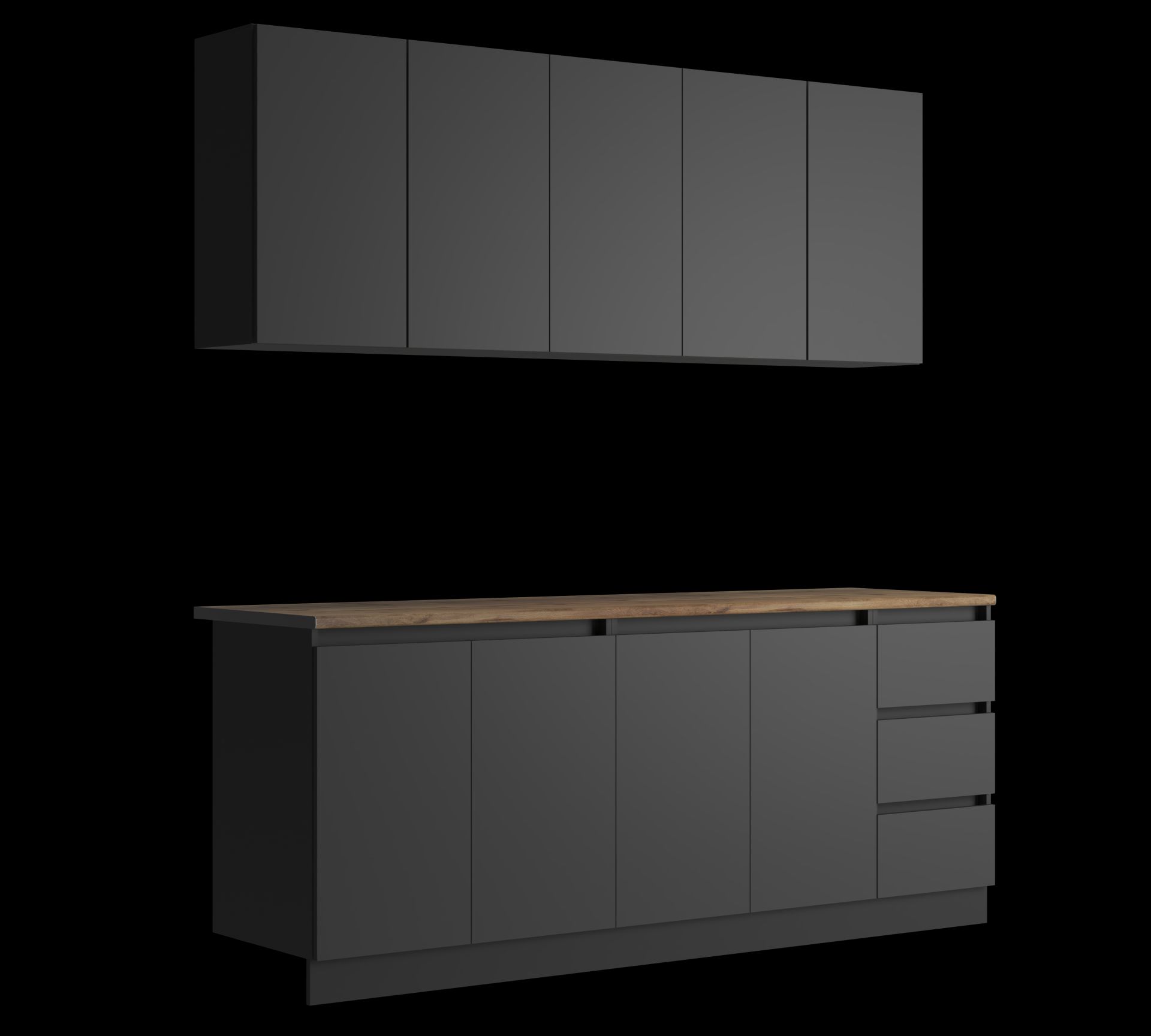 Цвет корпуса/фасада: Графит. Кухня "Мальм" оснащена цельной столешницей, размер: 2 м, толщина- 26 мм, в цвете - «Дуб вотан».
